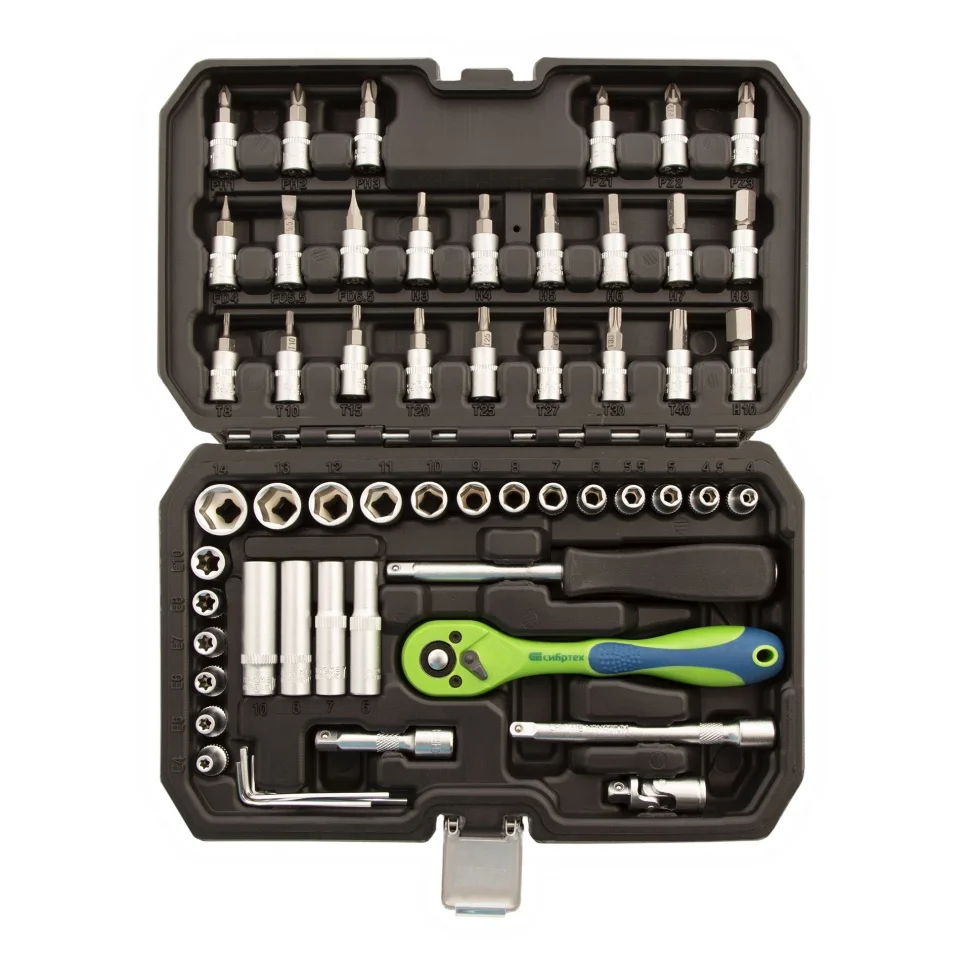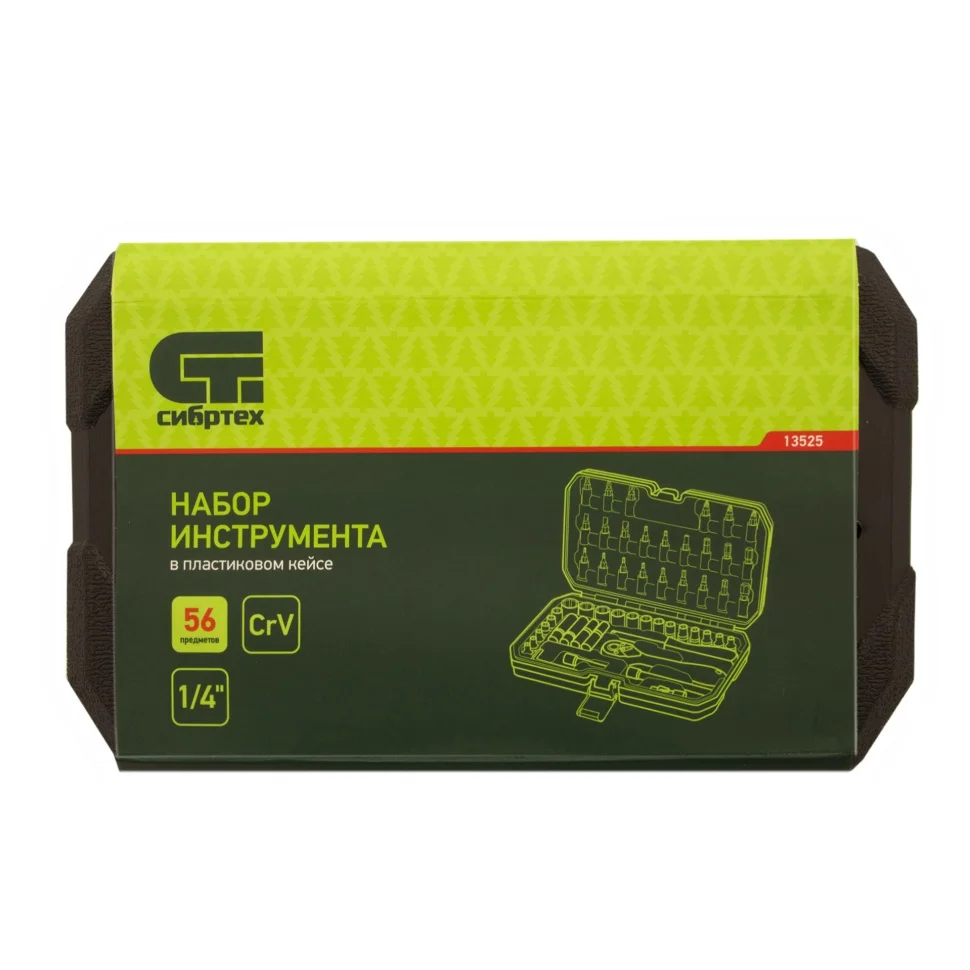 Набор инструментов 56 предметов, CrV, 1/4" Сибртех 13525