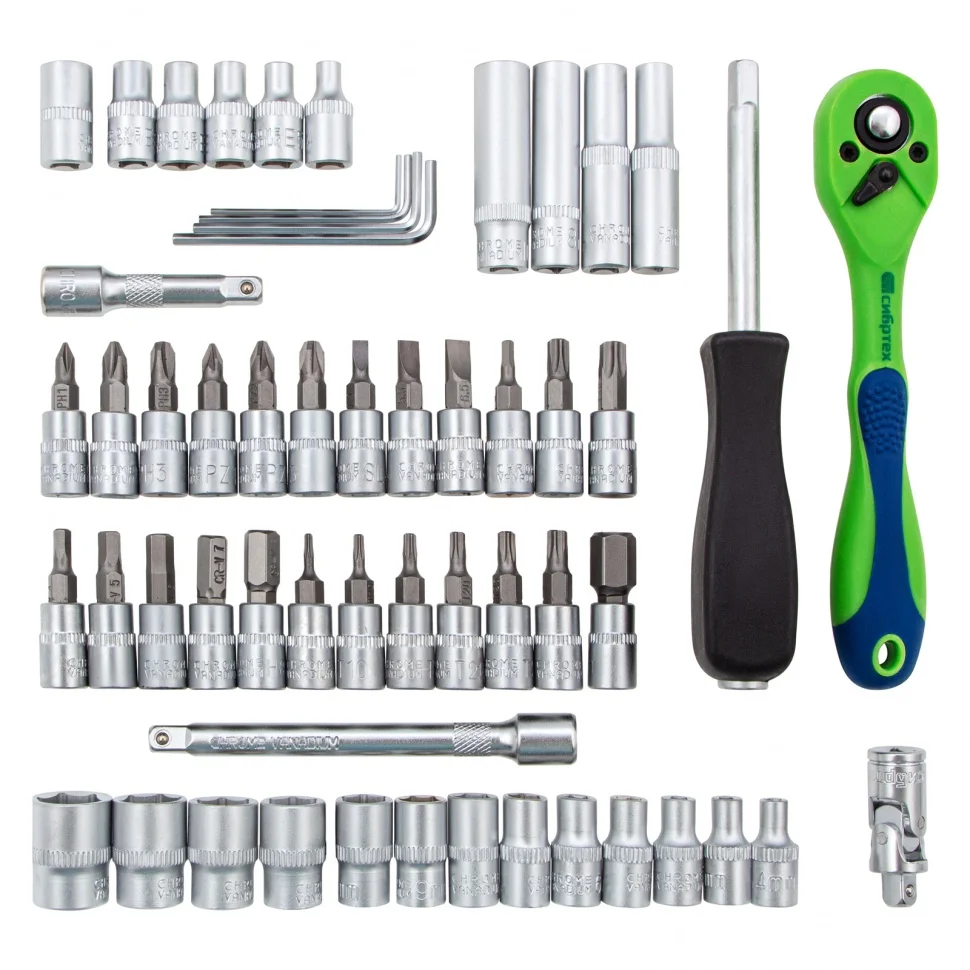 - Износостойкость — элементы набора изготовлены из высокопрочной стали хромованадиевой группы.