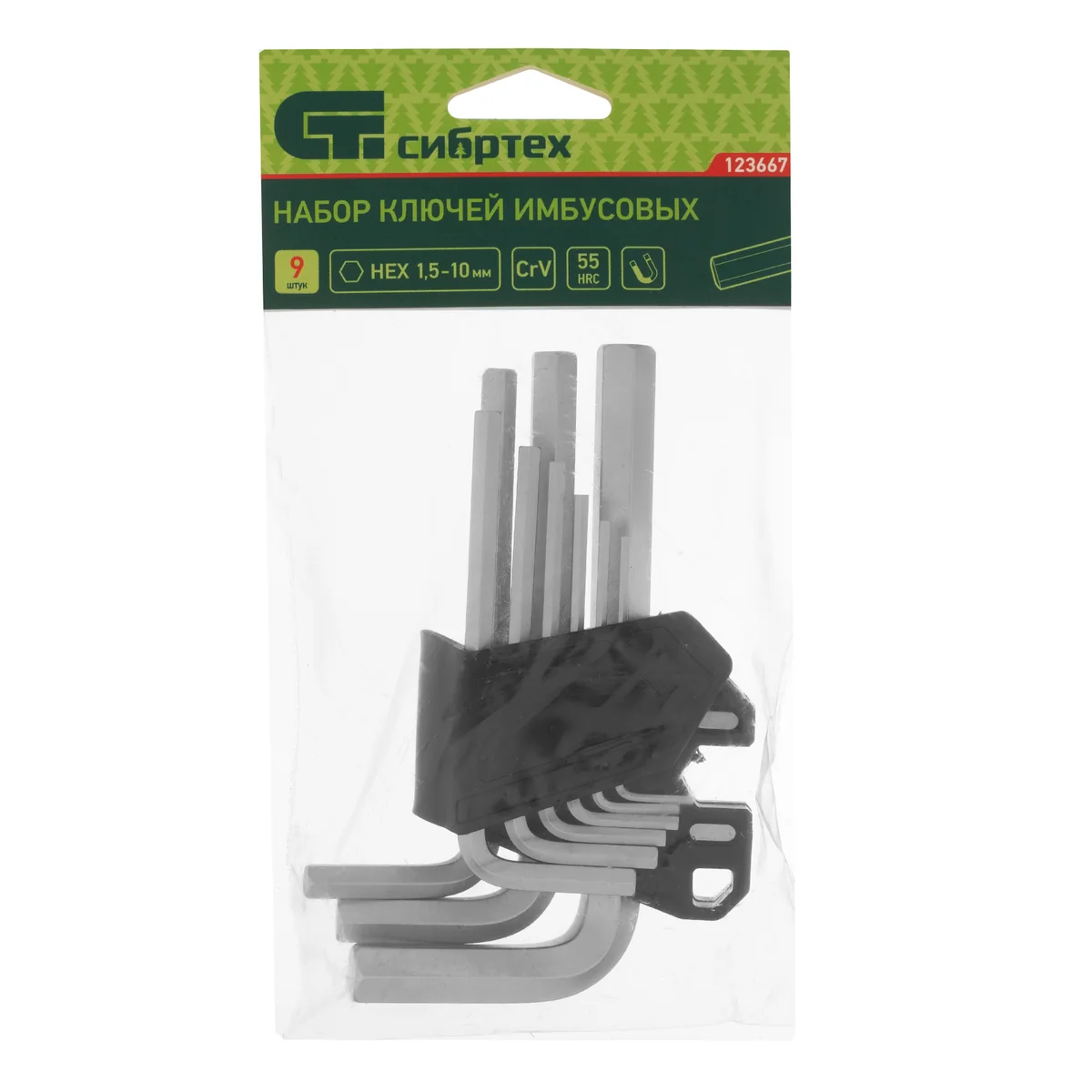Набор Сибртех 123667 включает в себя 9 имбусовых ключей из стали CrV размером 1,5-10 мм, предназначенных для закручивания и откручивания крепежа со шлицем типа HEX. Набор пригодится для ремонта велосипедов, сборки мебели, установки и регулировки пластиковых окон.