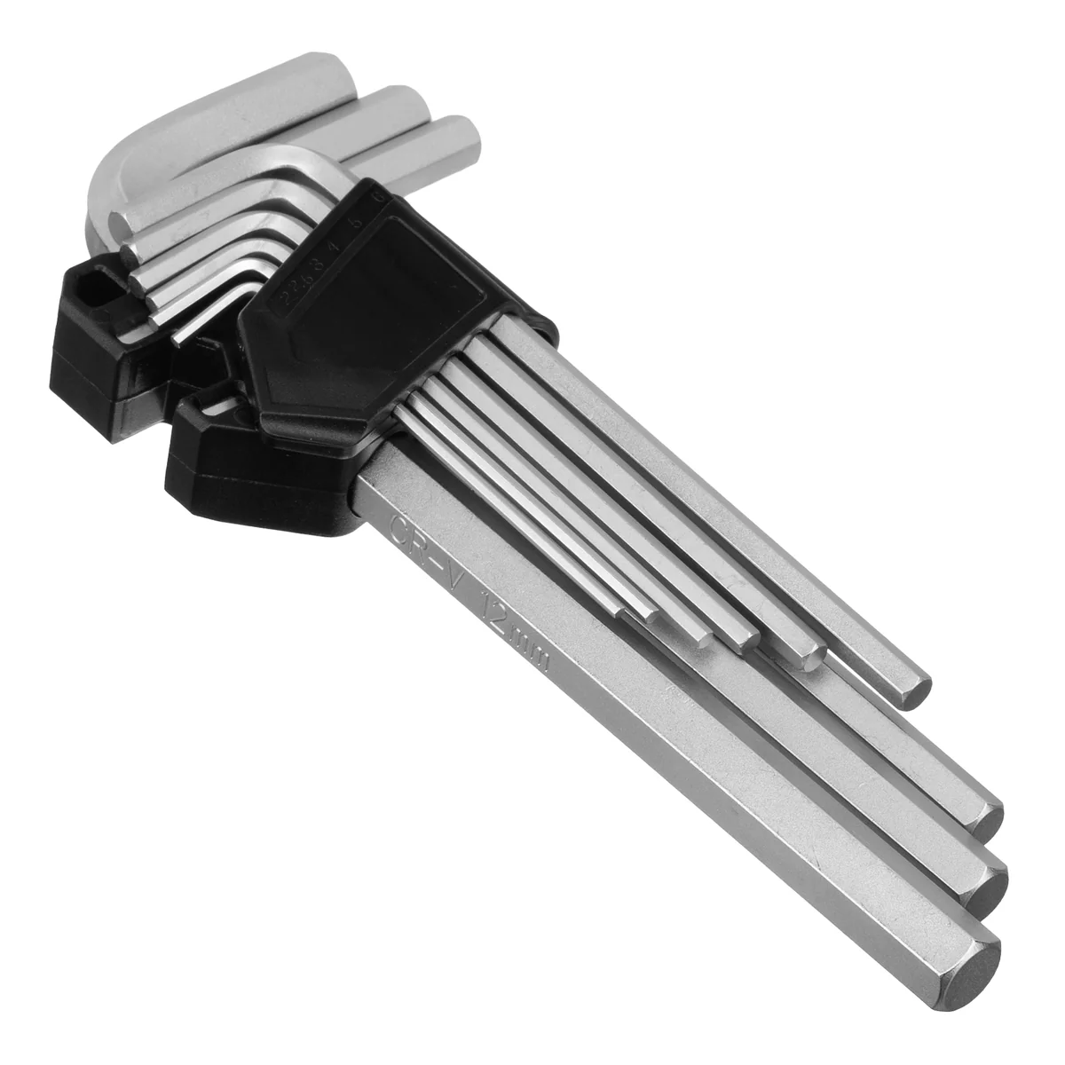 Набор Сибртех 123697 включает в себя 9 удлиненных имбусовых ключей из стали CrV, размером 2-12 мм, предназначенных для закручивания и откручивания крепежа со шлицем типа HEX. Ключи удобны для работы в труднодоступных местах. Набор пригодится для ремонта велосипедов, сборки мебели, установки и регулировки пластиковых окон.