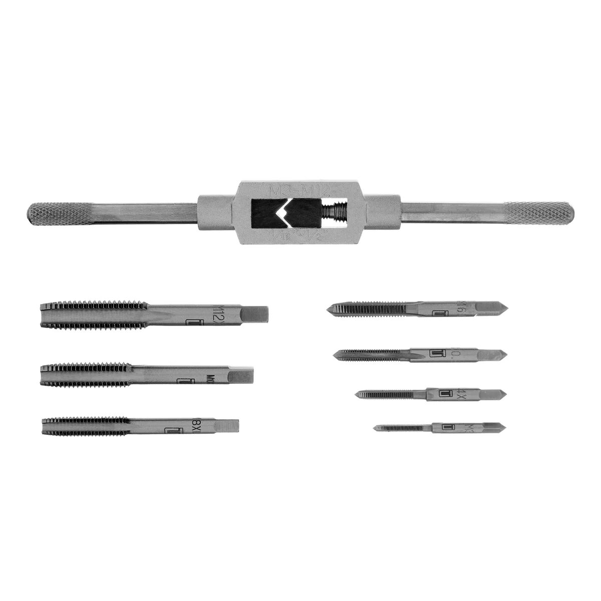 Набор метчиков М3-М12 Сибртех 77308 состоит из 8 предметов — метчикодержателя и метчиков, позволяющих вручную нарезать внутреннюю резьбу в сквозных и глухих отверстиях. Оптимален для работы с цветными металлами. Набор будет полезен при ремонте оборудования, автомобилей, а также пригодится в быту.