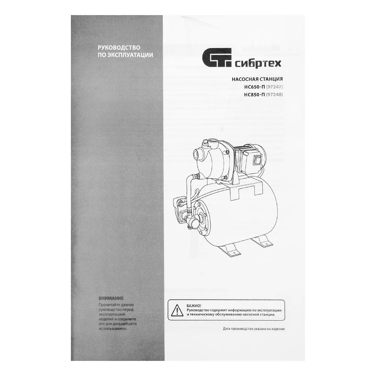 Насосная станция НС850-П, 850 Вт, напор 42 м, 3500 л/ч, ресивер 19 л Сибртех 97248