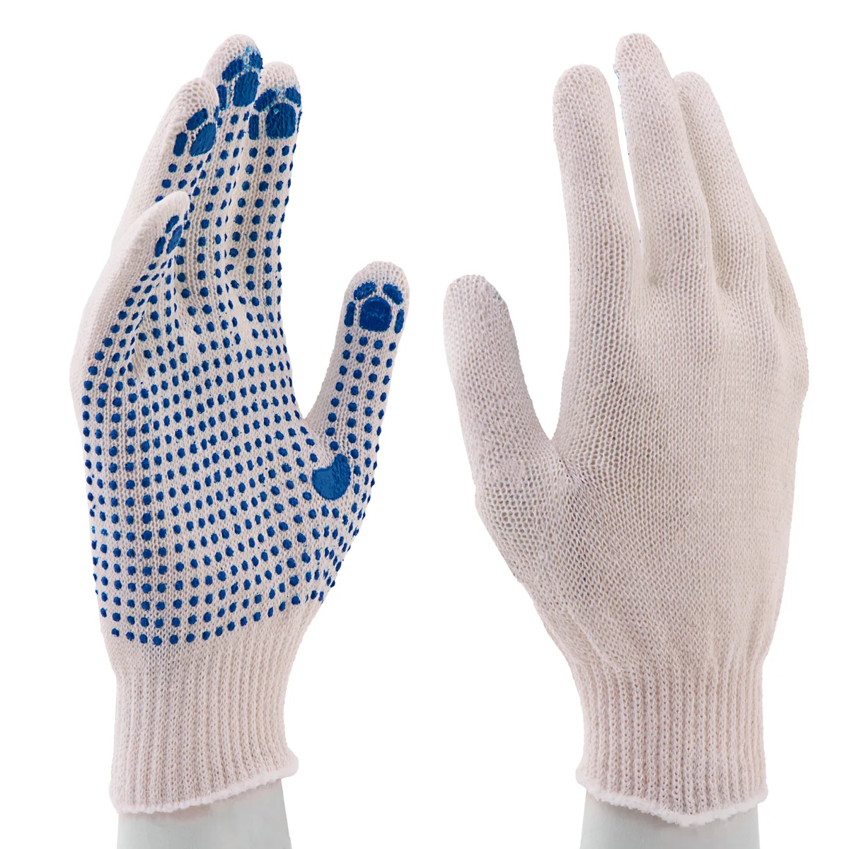 Перчатки трикотажные Сибртех 68019 с ПВХ-точкой, 10 класса вязки, 50 пар в упаковке, защищают руки от царапин, порезов, ссадин, мозолей и загрязнений. Тонкая пряжа обеспечивает пальцам чувствительность, что удобно при выполнении точных работ. Перчатки используют в строительстве, на производстве, во время ремонта помещений и обслуживания автомобилей. Пригодятся они и в хозяйстве.