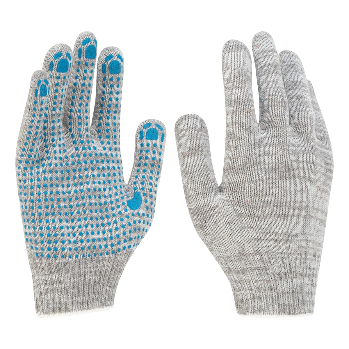 Перчатки трикотажные 678145 с ПВХ-точкой, 5 пар в упаковке, 10 класса вязки, защищают руки пользователя от царапин, порезов, ссадин, мозолей и загрязнений. Тонкая пряжа обеспечивает пальцам чувствительность, что позволяет выполнять точные работы. Благодаря ПВХ-покрытию ладонной части инструменты не выскальзывают из рук. Перчатки используют в строительстве, на производстве, во время ремонта помещений и обслуживания автомобилей. Пригодятся они и в хозяйстве.