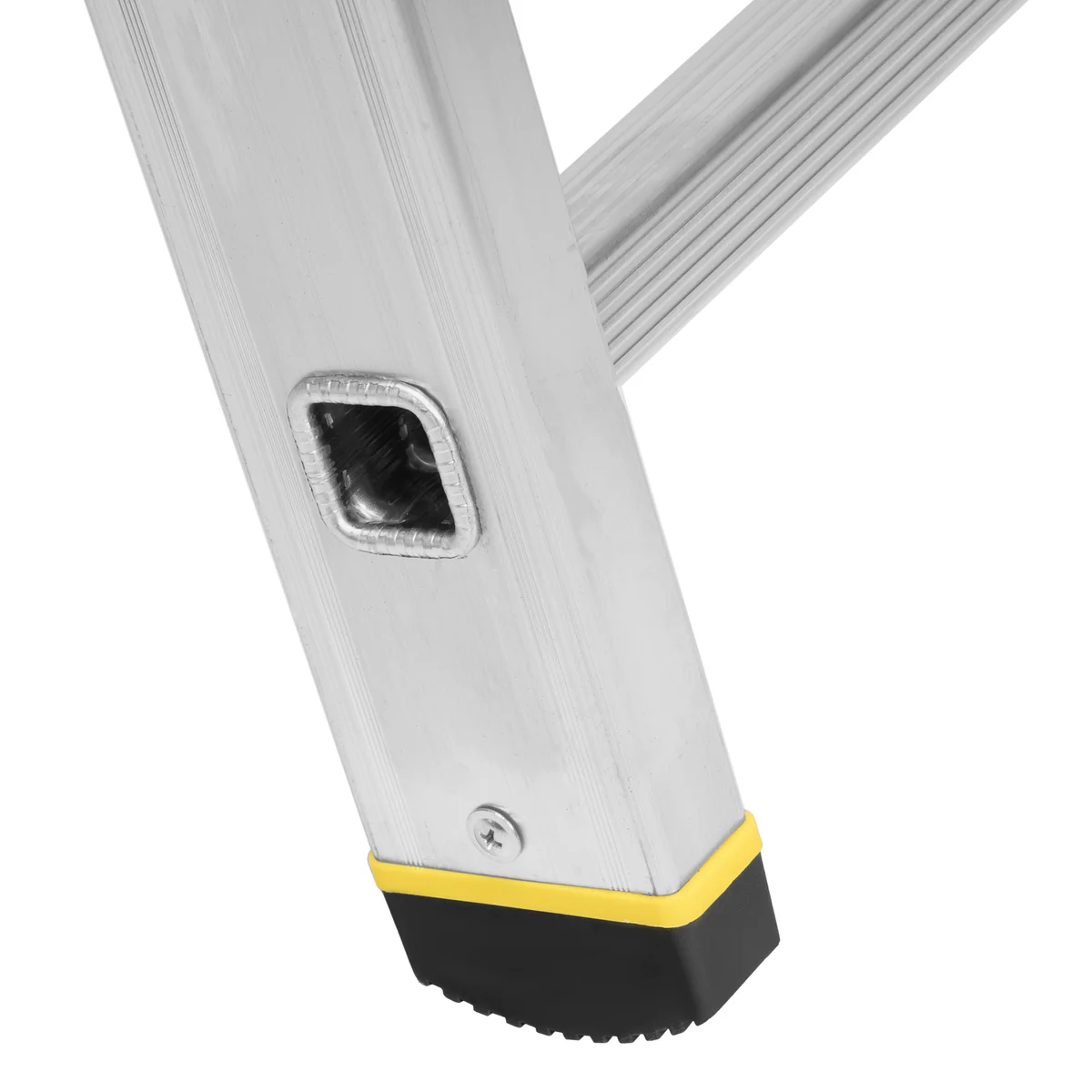 - Увеличенная прочность — стойки усилены в местах наибольшей нагрузки, многократная развальцовка обеспечивает надежное соединение ступеней со стойками.