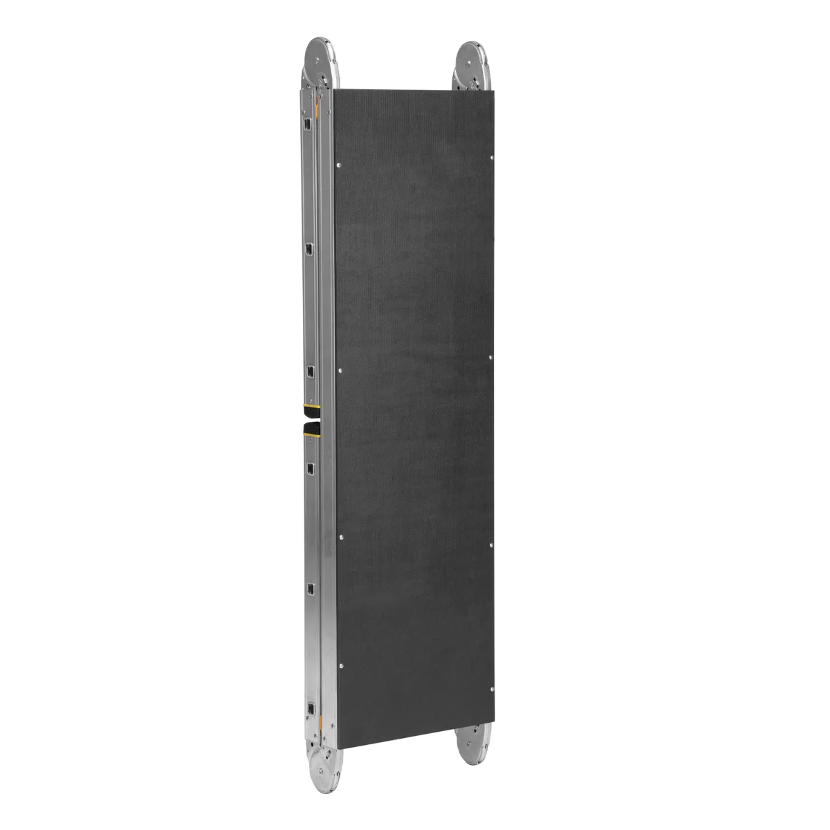 - Безопасность — ступени имеют антискользящую рифленую поверхность, а благодаря пластиковым накладкам на стойках подмости не скользят во время работы.