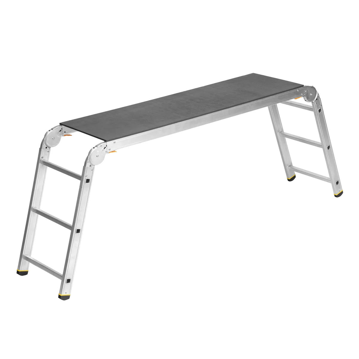 - Простая установка — подмости быстро устанавливаются и складываются, шарнирные замки легко регулируются и автоматически фиксируются.