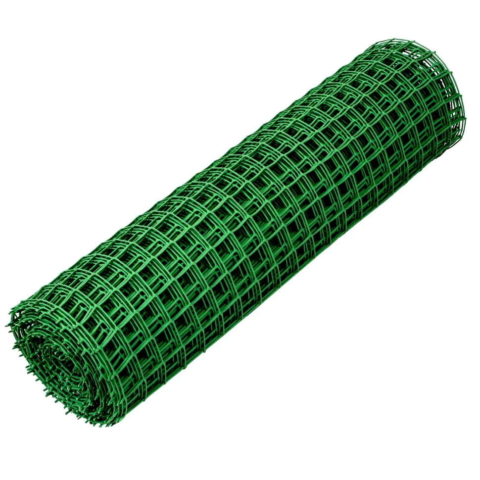 Зеленая пластиковая заборная решетка 64516, 1 х 20 м, в рулоне, с ромбовидными ячейками 50 х 50 мм, используется для создания изгороди. С ее помощью можно полностью оградить садовую и жилую территорию или зонировать отдельные участки. Возможно применение изделия в качестве каркаса для живой изгороди или элемента декора вместе с деревянными и каменными материалами. Также решетка пригодится для установки ограды на детских и спортивных площадках, создания вольеров для птиц и животных.