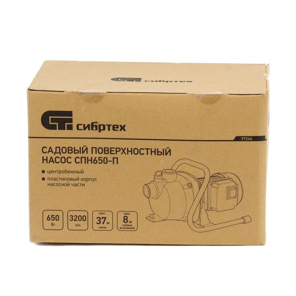 Садовый поверхностный насос СПН650-П, 650 Вт, напор 37 м, 3200 л/ч, пластик Сибртех 97244