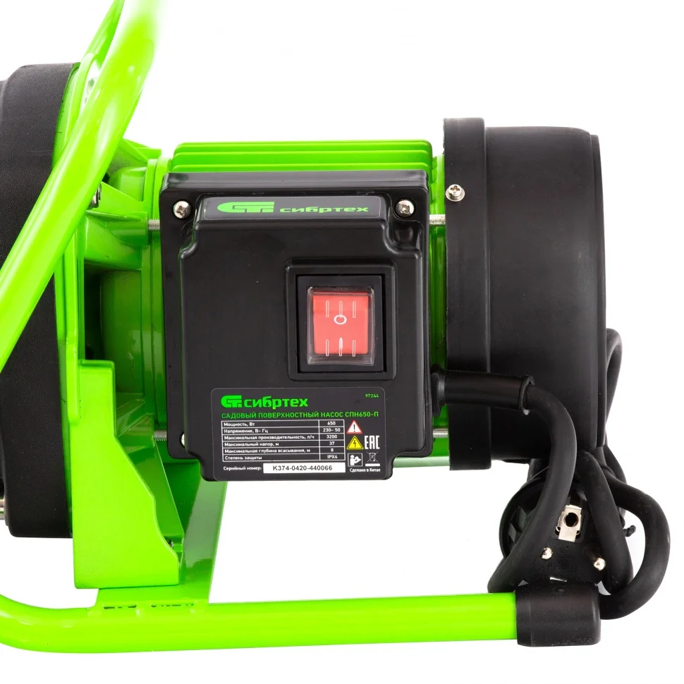 Садовый поверхностный насос Сибртех СПН650-П 97244, с корпусом насосной части из пластика, мощностью 650 Вт, предназначен для перекачивания воды с глубины до 8 м и со скоростью 3200 л/ч, создавая напор до 37 м. Высокой производительности достаточно для организации системы полива и водоснабжения в частном доме с несколькими точками водоразбора. Напор 37 м позволяет подавать воду на верхние этажи.