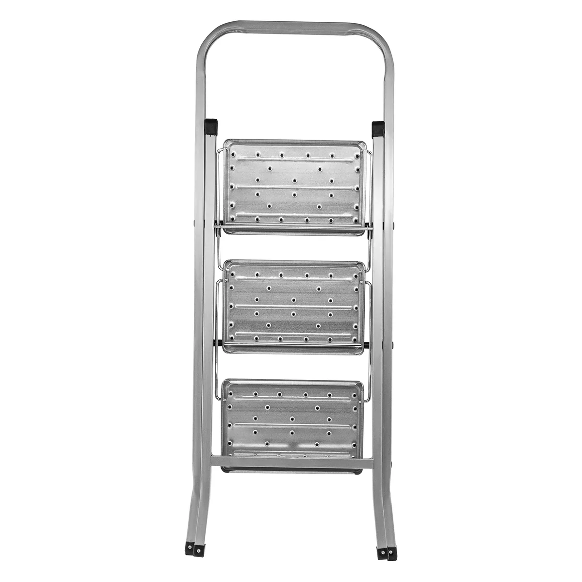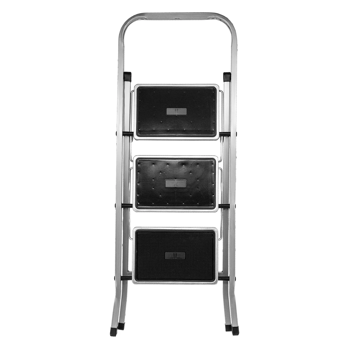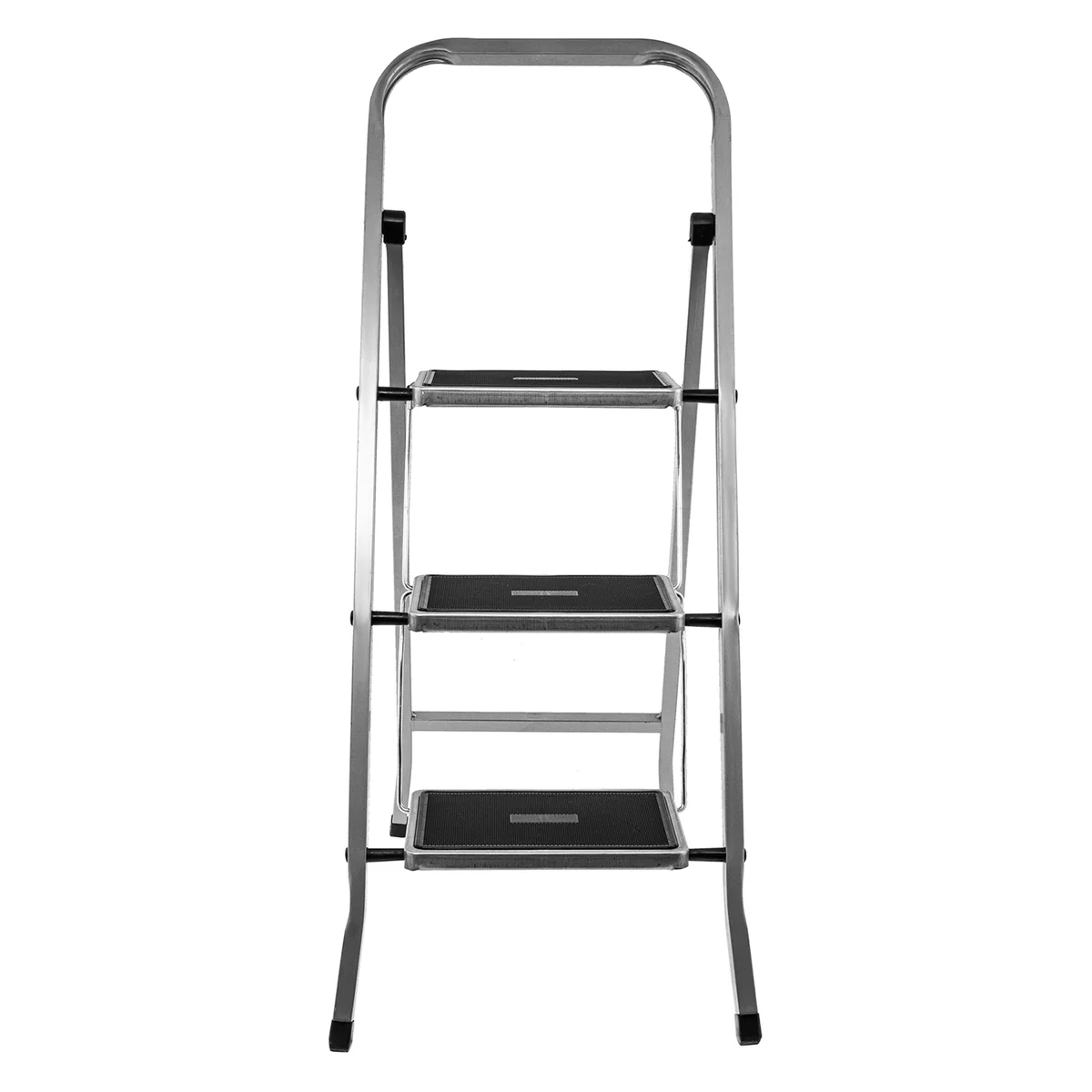 - Прочность — рама и ступени изготовлены из стали, поэтому стремянка выдерживает нагрузку 120 кг.