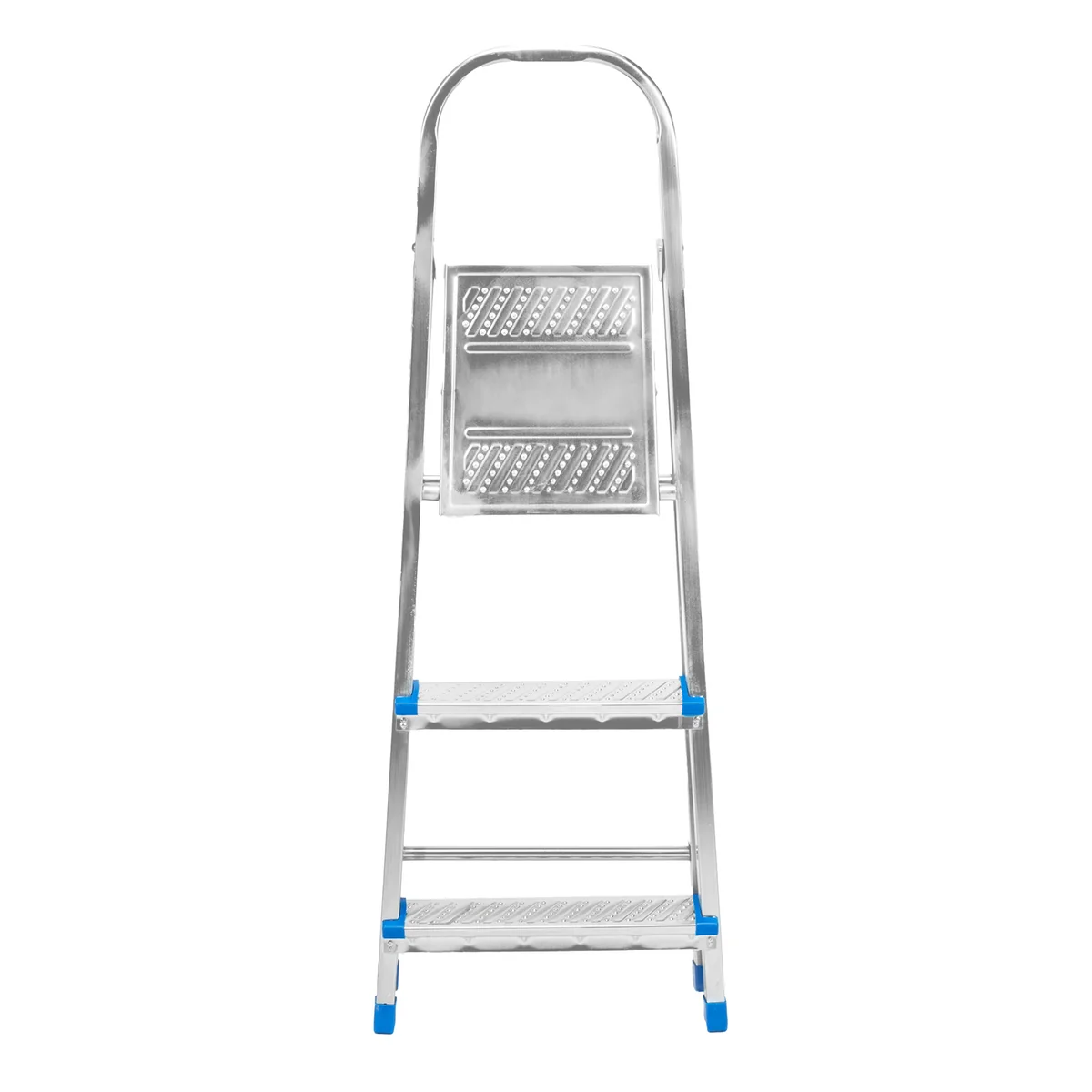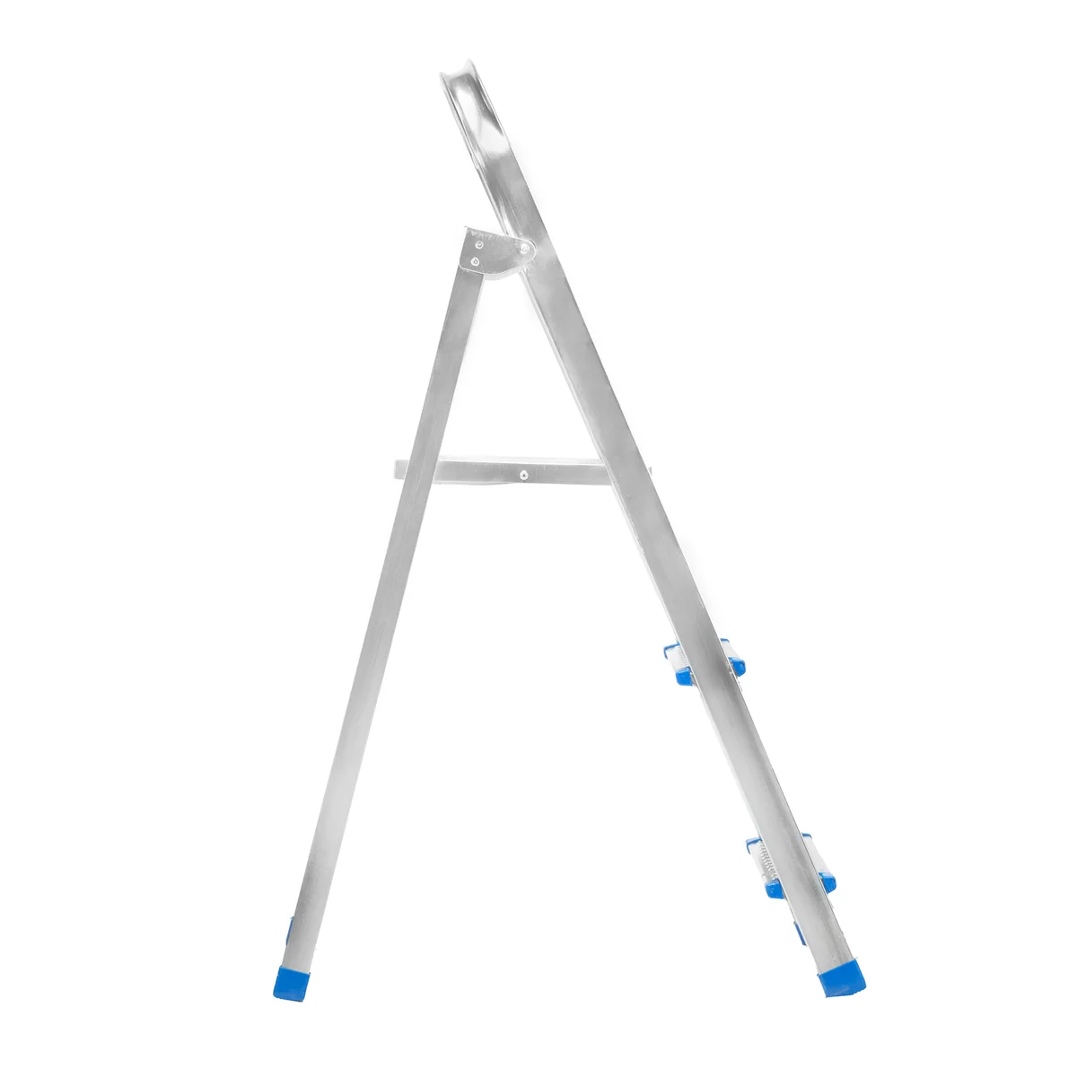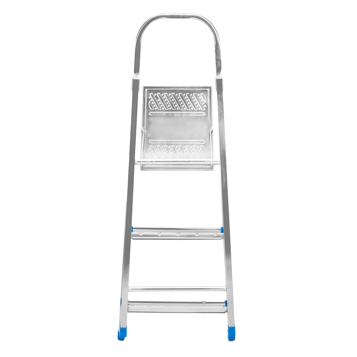 Стальная оцинкованная стремянка Сибртех 97835 с 3 ступенями позволяет повесить полку, картину или шкафчик, достать нужный предмет и решить другие задачи, для которых требуется доступ к предметам на высоте. Рама и ступени из стального профиля выдерживают вес до 120 кг. Расстояние от опорной поверхности до площадки составляет 54 см, при среднем росте пользователя 170 см рабочая высота лестницы — 254 см. Необходимо соблюдать технику безопасности: размещать стремянку только на ровной плоскости и не использовать ее для работы с дрелью, шуруповертом и другим электроинструментом.
