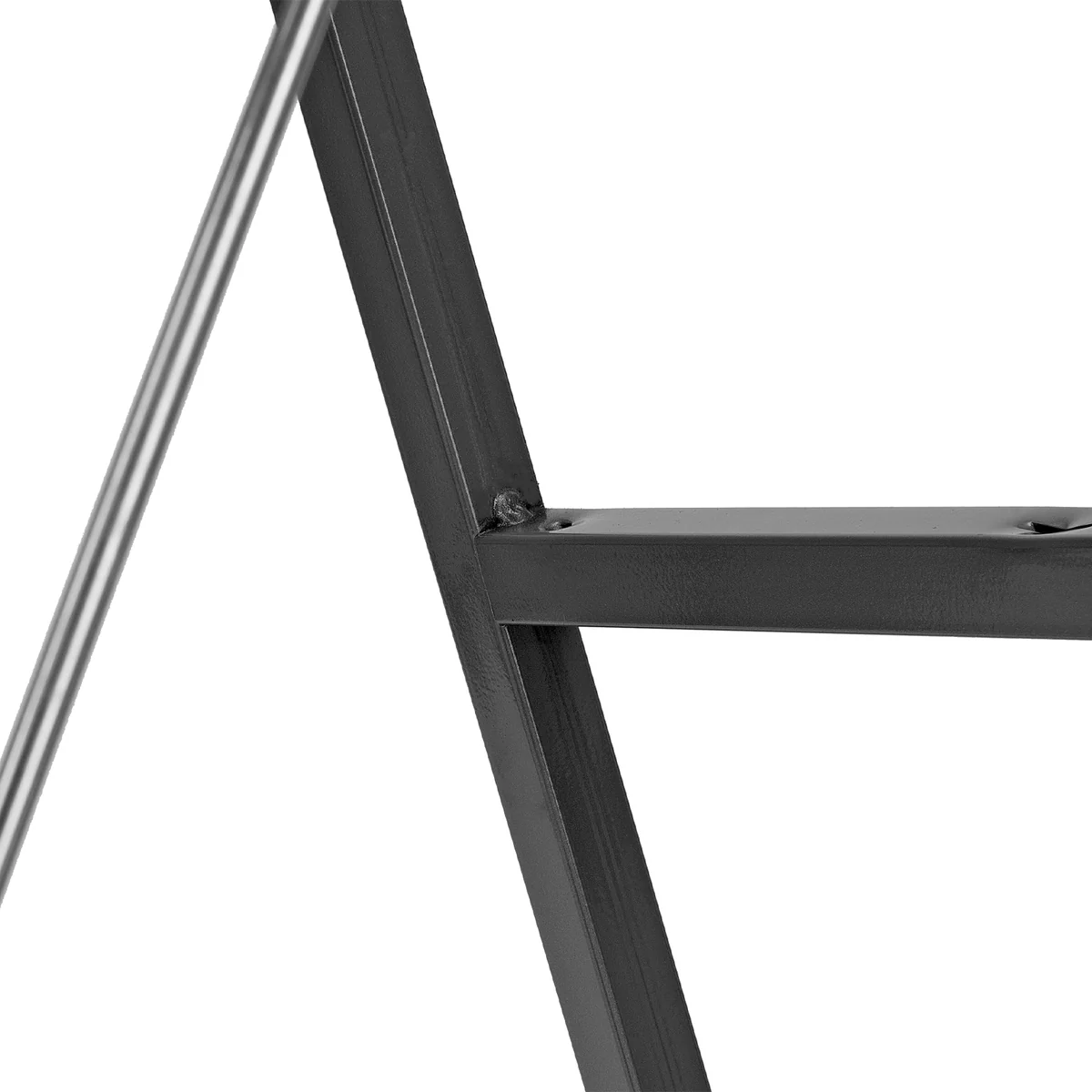 - Прочность — рама и ступени изготовлены из стали, поэтому стремянка выдерживает нагрузку 120 кг.
