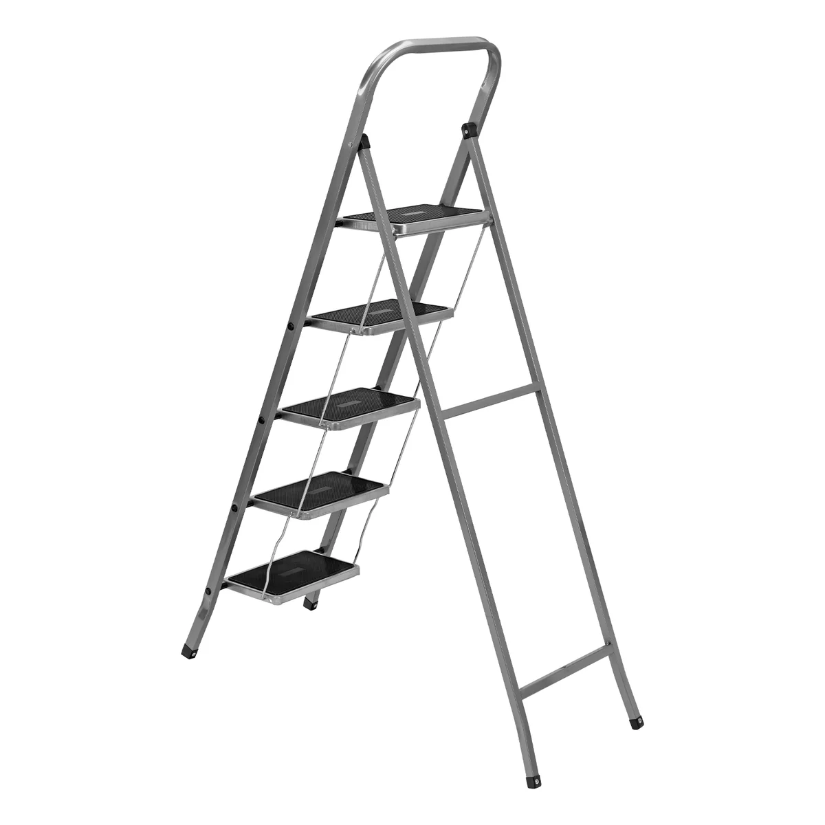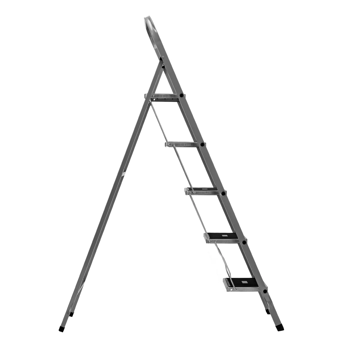 Стремянка стальная Сибртех 97870 имеет 5 ступеней с полимерными ковриками и упрощает доступ к предметам и поверхностям, расположенным выше человеческого роста. Лестница легко раскладывается и складывается, а широкое основание придает ей устойчивость. Площадка находится на высоте 116 см от опорной поверхности, рабочая высота стремянки составляет 316 см (при среднем росте пользователя 170 см). Пригодится во время строительства и ремонта, а также будет полезна в быту.