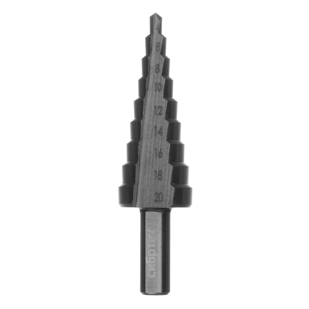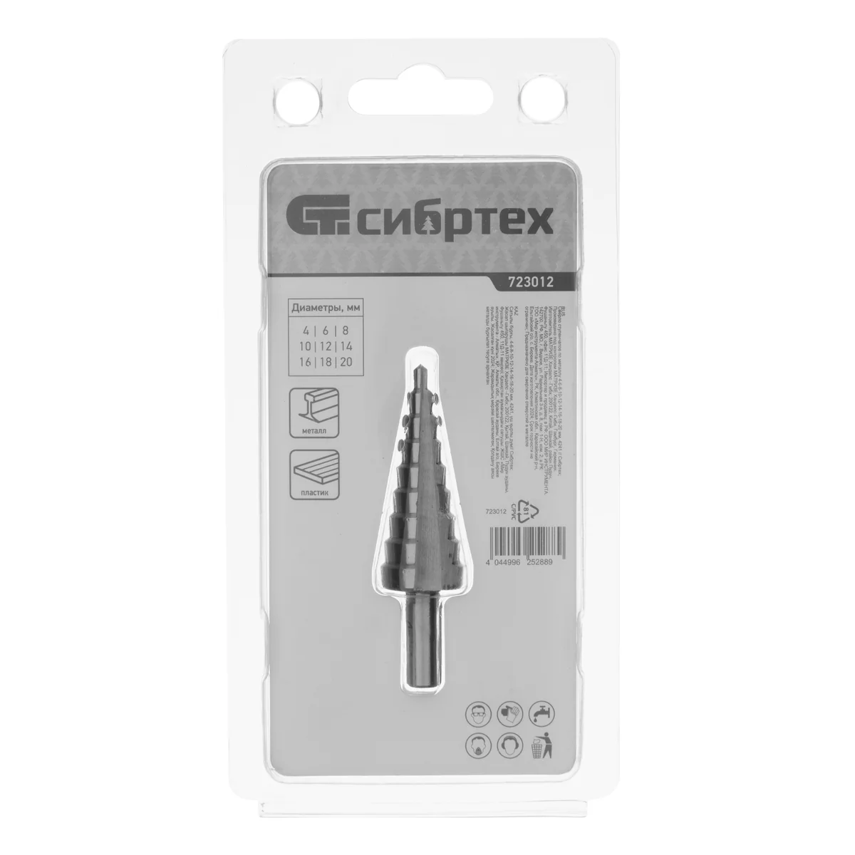 Ступенчатое сверло Сибртех 723012 предназначено для сверления отверстий диаметром от 4 до 20 мм в сталях, цветных металлах и пластике. Избавляет от необходимости иметь при себе целый набор традиционных сверл. Позволяет получать отверстия с ровными краями и уже снятой фаской под гайку или болт. Сверло пригодится дома и в мастерской.