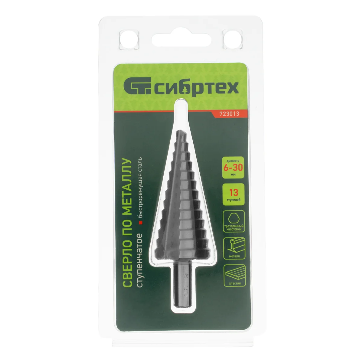 Ступенчатое сверло Сибртех 723013 предназначено для сверления отверстий диаметром от 6 до 30 мм в сталях, цветных металлах и пластике. Избавляет от необходимости иметь при себе целый набор традиционных сверл. Позволяет получать отверстия с ровными краями и уже снятой фаской под гайку или болт. Сверло пригодится дома и в мастерской.