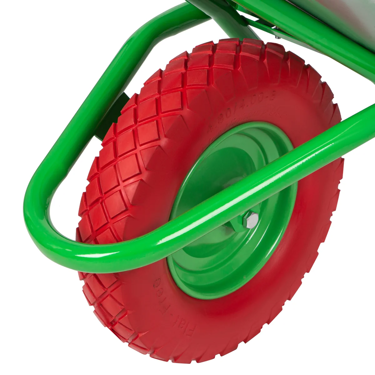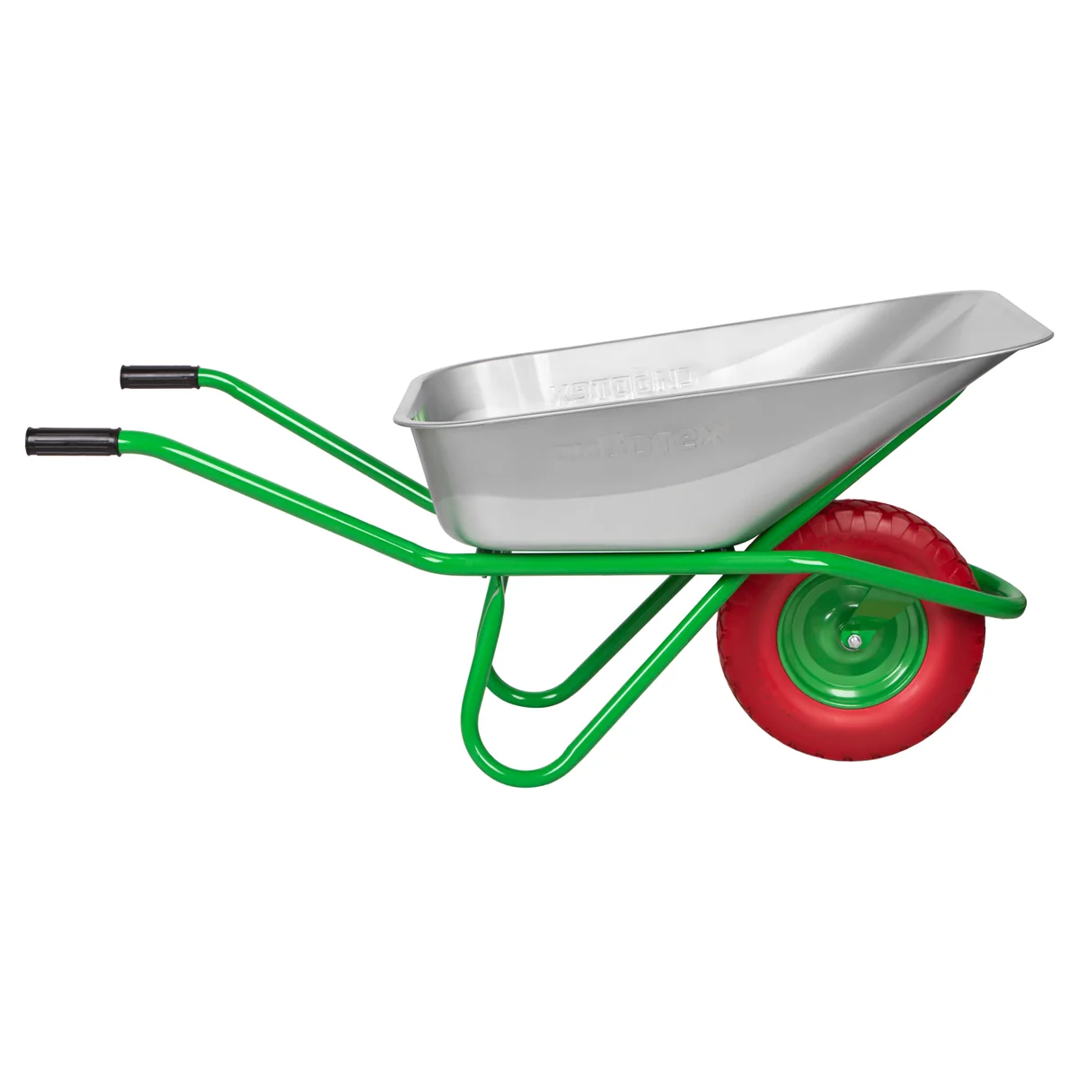 - Хорошая проходимость — колесо с 2 шариковыми подшипниками легко вращается, позволяя перемещать тачку по неровной поверхности.