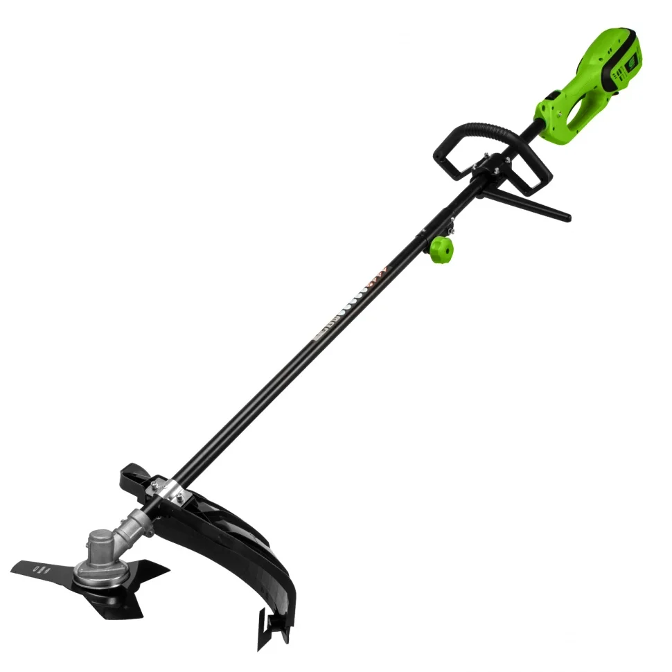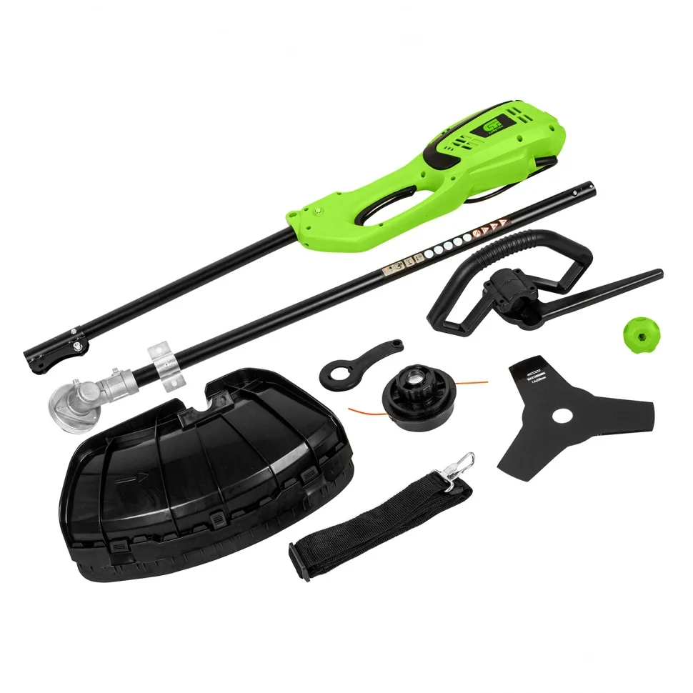 - Эргономичность — плечевой ремень снижает нагрузку на руки, а D-образная ручка обеспечивает надежный хват и облегчает управление триммером.