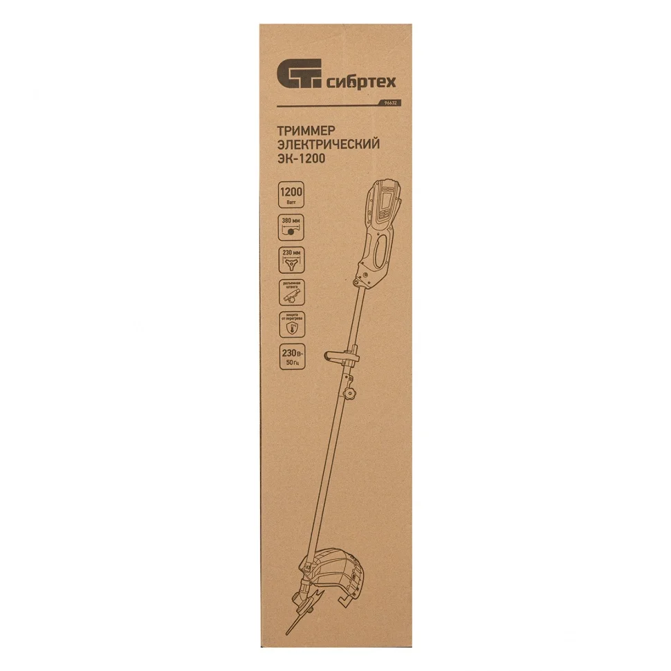 Электрический триммер Сибртех ЭК-1200 96632 мощностью 1200 Вт, с разборной штангой, предназначен для стрижки газона с помощью катушки с шириной скашивания 380 мм, а входящий в комплект режущий диск позволяет избавляться от сорняков, растительности с толстыми стеблями, а также срезать мелкий кустарник. Триммер пригодится в местах недоступных для колесной газонокосилки: между грядками, вдоль стен, заборов и тротуаров. С ним легко справится даже неопытный пользователь, т. к. он прост в применении и не нуждается в техническом обслуживании.