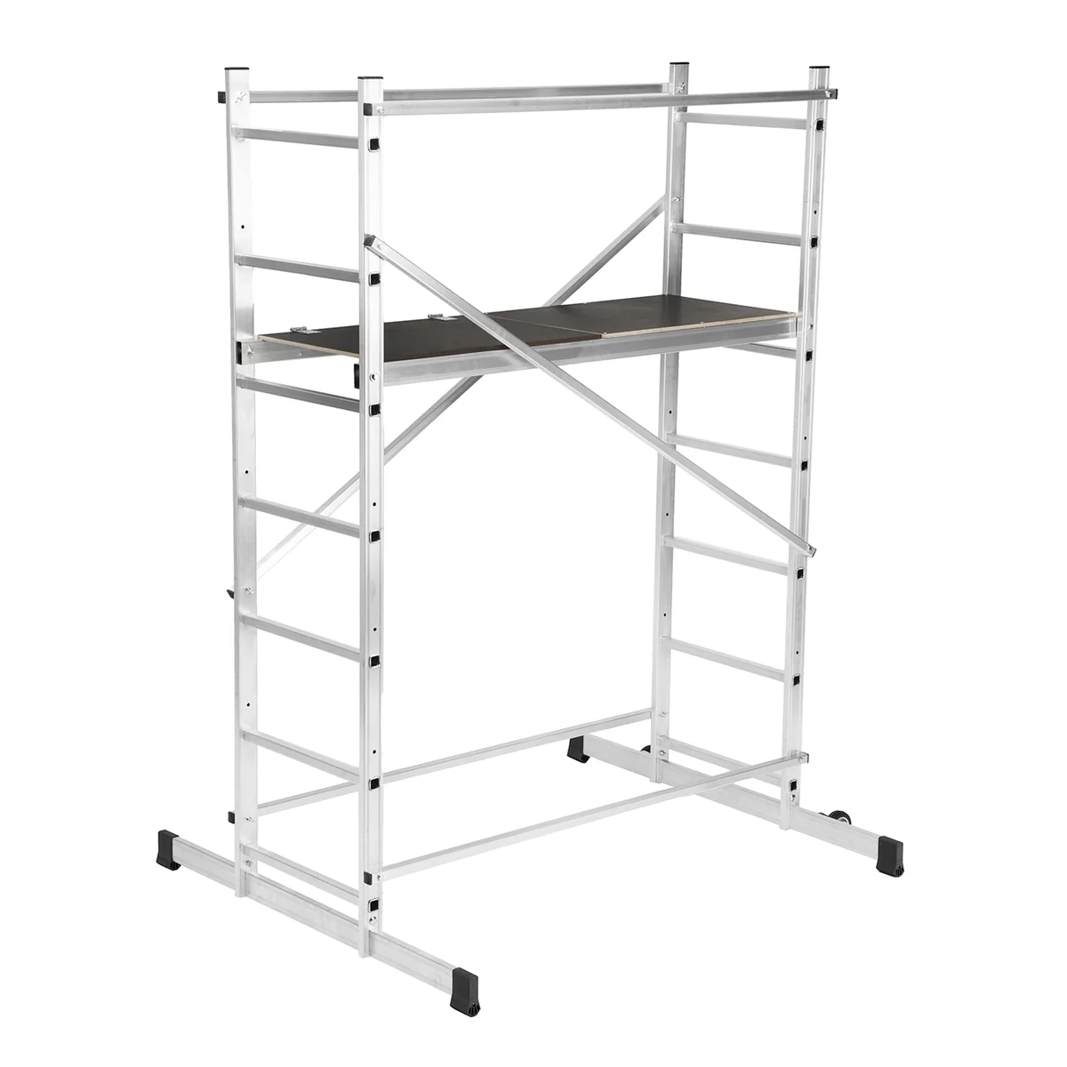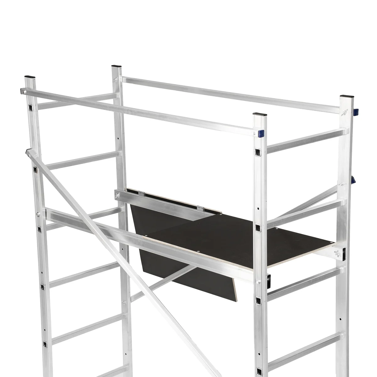 - Регулируемые траверсы — вышку можно ставить вплотную к стене.
