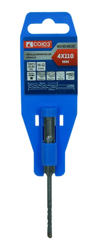 Бур SDS+ 04x110 мм с твердосплавной напайкой, СПИРАЛЬ S4 , Союз 9019-SDS-04x110C