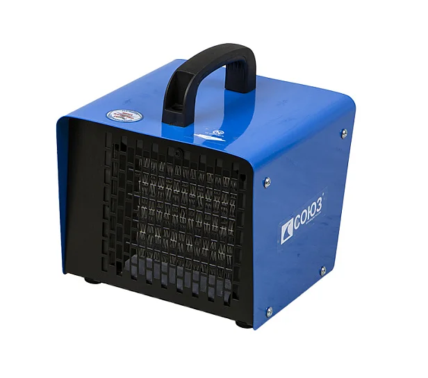 СОЮЗ ТВС-2020К – компактная керамическая тепловая пушка мощностью 2 кВт и производительностью воздушного потока 153 м3 / ч. Предназначена для временного или постоянного обогрева жилых, производственных и вспомогательных помещений площадью до 30 м2. Модель обладает небольшими массогабаритными показателями и не доставит трудностей при хранении и транспортировке. Кроме того, благодаря своей прямоугольной форме и низкому центру тяжести, обогреватель очень устойчив, что минимизирует риск его случайного опрокидывания. В основе конструкции СОЮЗ ТВС-2020К металлокерамический нагревательный элемент, за счет большой теплоотдающей поверхности которого гарантируется быстрый прогрев помещения. Обогреватель не сушит воздух и не выделяет вредных веществ. Для того, чтобы обеспечить высокую производительность воздушного потока, проходящего через нагревательный элемент и ускорить циркуляцию нагретого воздуха, модель оснащена встроенным мощным вентилятором. Управление устройством осуществляется с помощью кнопочного переключателя, расположенного на задней панели. С его помощью пользователь выбирает необходимый режим работы: на половину мощности – 1кВт (теплый обдув), либо на полную мощность – 2кВт (горячий обдув). Также, тепловая пушка оснащена термостатом, с возможностью регулировки, позволяющим поддерживать постоянную температуру воздуха в помещении. Удобству перемещения устройства с места на место способствует пластиковая рукоять в верхней части корпуса.