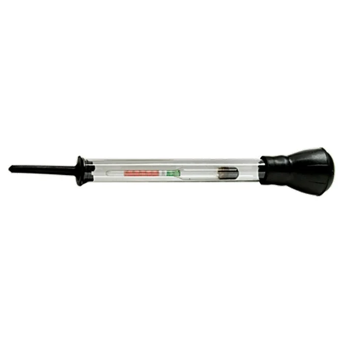 Ареометр для измерения плотности электролита Sparta 549125 — необходимый для водителей и механиков прибор, который значительно упрощает процесс проверки плотности электролита в аккумуляторе автомобиля. С помощью него можно определить необходимость замены раствора, а также измерить его качество.ПреимуществаБезопасная конструкция — полая колба с поплавком внутри исключает попадание токсичных веществ на кожу.Долговечность — колба из пластика более удобная и износостойкая в сравнении со стеклянными аналогами, она не разобьется при падении.Простота и точность замеров — цветная шкала с допустимыми значениями плотности помогает легко определить, нужно ли менять жидкость в аккумуляторе.