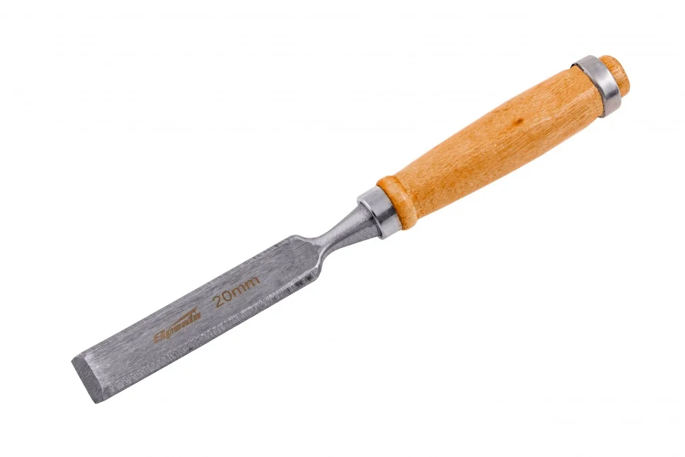 Плоское долото-стамеска 6 мм с деревянной рукояткой предназначено для столярных и плотничных работ- выборка и зачистка небольших прямоугольных пазов, снятия фасок в натуральной древесине любой твердости.Полотно стамески выполнено из конструкционной стали 45 и острозаточена. Твердость инструмента на длине 0,7 рабочей части полотна составляет 45-55 HRC. Рукоятка имеет защитное лакокрасочное покрытие и оборудована металлическим кольцом с тыльной стороны, которое предотвращает раскол дерева при ударах молотком или киянкой.