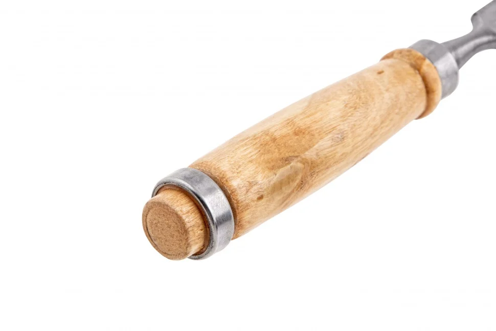 Плоское долото-стамеска 6 мм с деревянной рукояткой предназначено для столярных и плотничных работ- выборка и зачистка небольших прямоугольных пазов, снятия фасок в натуральной древесине любой твердости.Полотно стамески выполнено из конструкционной стали 45 и острозаточена. Твердость инструмента на длине 0,7 рабочей части полотна составляет 45-55 HRC. Рукоятка имеет защитное лакокрасочное покрытие и оборудована металлическим кольцом с тыльной стороны, которое предотвращает раскол дерева при ударах молотком или киянкой.