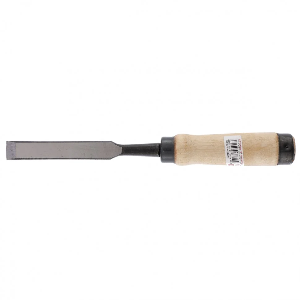 Плоское долото-стамеска Арефино 24255 с режущей частью шириной 16 мм и деревянной рукояткой — инструмент для столярных и плотницких работ. Пригодится для выборки и зачистки небольших прямоугольных пазов, снятия фасок в натуральной древесине любой твердости. По стамеске можно наносить удары киянкой или небольшим молотком, поэтому она легче врезается в материал и позволяет получить более ровный контур.ПреимуществаКачественное исполнение — полотно стамески изготовлено из конструкционной стали 65Г повышенной прочности.Высокий ресурс — полотно закалено до твердости 58-63 HRC на длину 0,7 рабочей части, поэтому режущая кромка долго сохраняет остроту.Стойкость к ударным нагрузкам — благодаря металлическому кольцу на тыльной стороне ручка не раскалывается от ударов молотком или киянкой.Надежная рукоятка — лаковое покрытие предотвращает ее преждевременное разрушение.