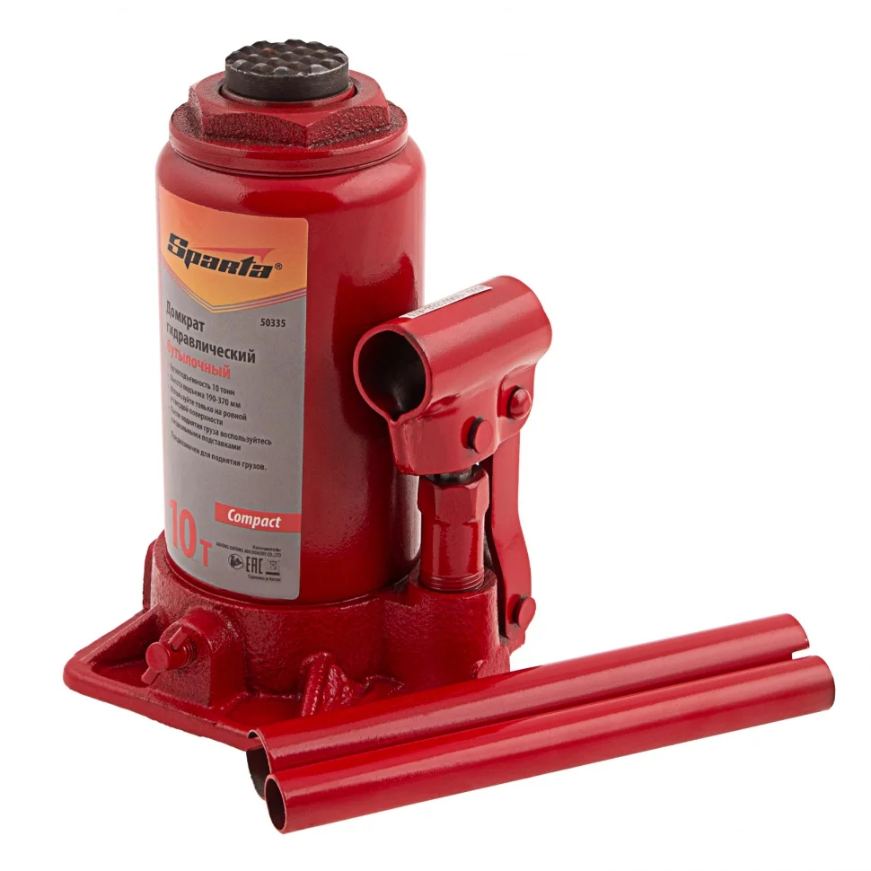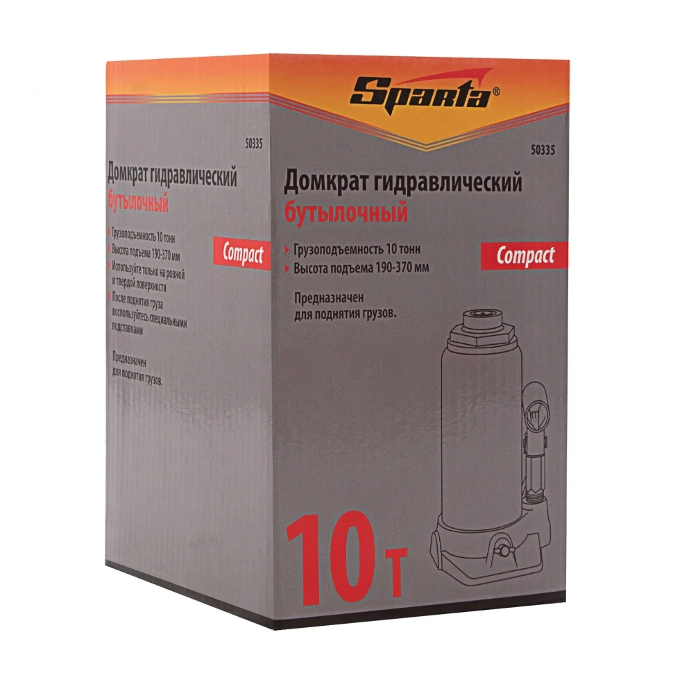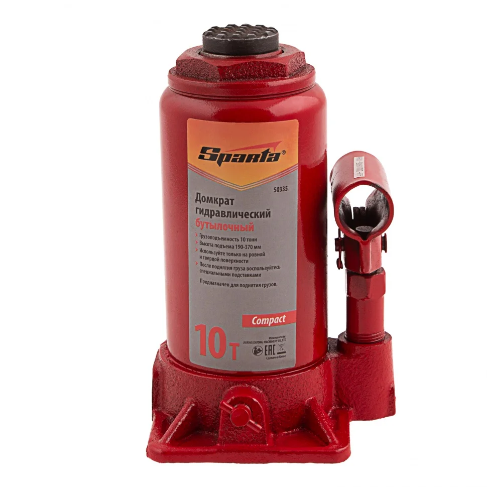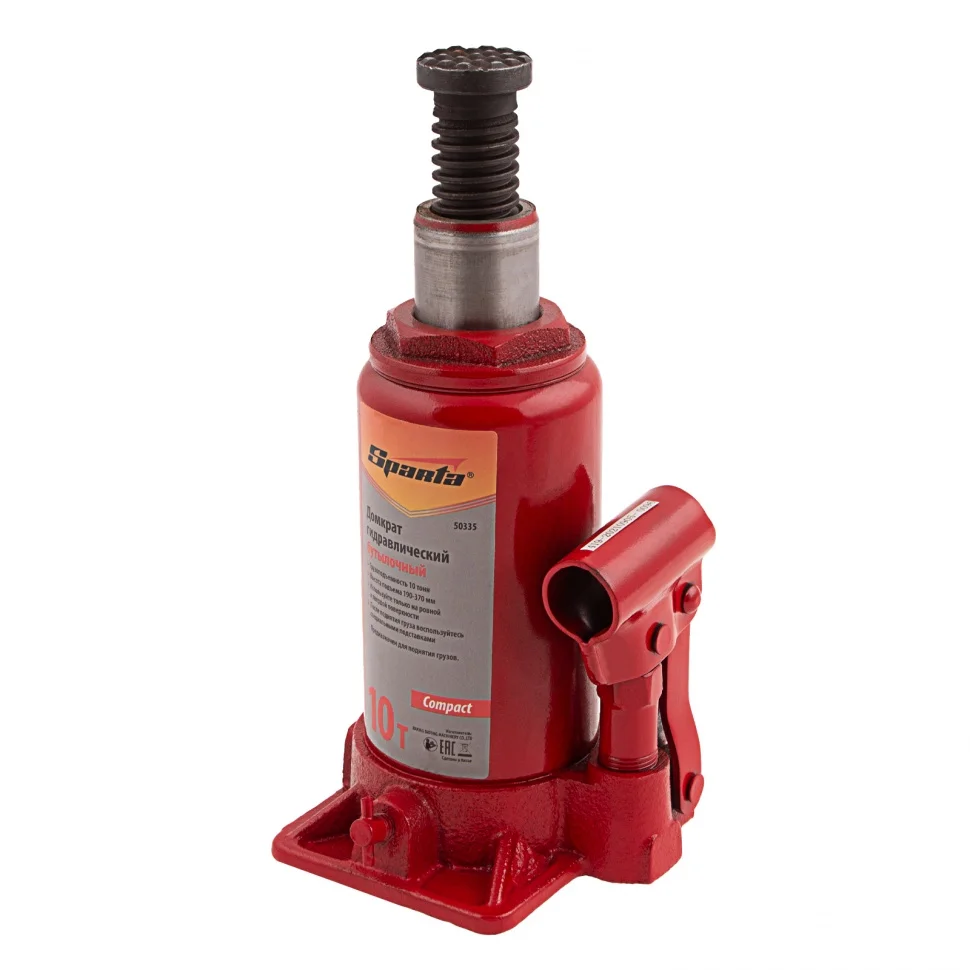 Домкрат гидравлический бутылочный 10 т, h подъема 190-370 мм Sparta Compact 50335