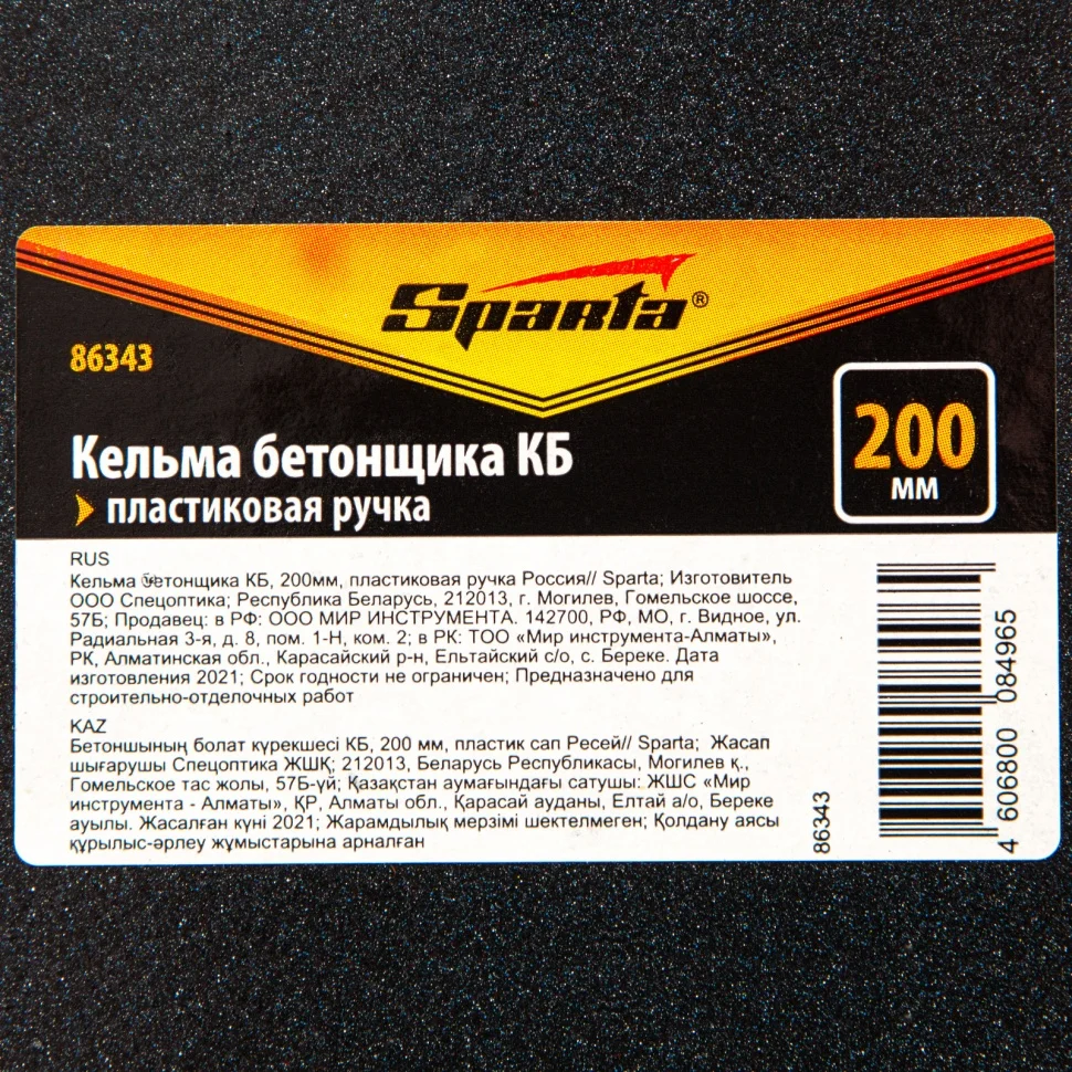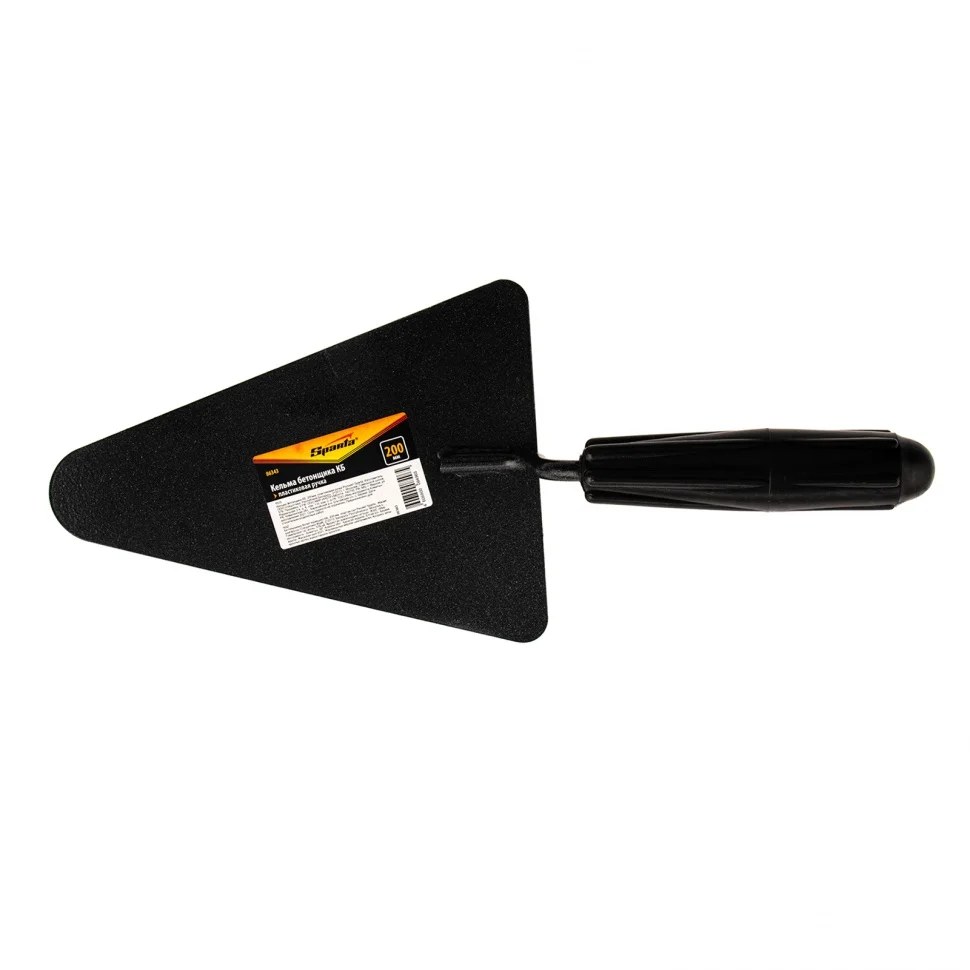 Кельма бетонщика Sparta КБ 86343, с полотном длиной 200 мм, с пластиковой ручкой, — инструмент для кладки кирпичей и строительных блоков, а также перемешивания цементного раствора. Полотном треугольной формы удобно отмерять смесь, а также выравнивать и подрезать раствор в труднодоступных местах. Рукоятка из ударопрочного пластика устойчива к механическим повреждениям и рассчитана на длительную эксплуатацию. Кельма будет полезна на строительной площадке.ПреимуществаПолотно изготовлено из углеродистой стали, что обеспечивает инструменту высокую деформационную стойкость.На стальную поверхность нанесено порошковое покрытие для защиты от коррозии, что продлевает срок службы кельмы.Рукоятка надежно прикреплена к платформе, что обеспечивает инструменту устойчивость к нагрузкам.Благодаря рельефной поверхности ручка не выскальзывает из ладони, поэтому инструмент комфортен в использовании.