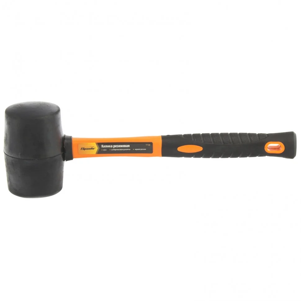 Резиновая киянка Sparta 11126 из черной резины с фибергласовой рукояткой, 450 г, применяется при проведении монтажных, сборочных и кузовных работ, укладке плитки. Резиновый боек обладает высокими амортизирующими свойствами, что делает его оптимальным для работы с чувствительными к давлению материалами.ПреимуществаРукоятка отличается высоким рабочим ресурсом, т.к. выполнена из фибергласа и не теряет свою форму.Обрезиненное покрытие на рукоятке обеспечивает надежный хват без проскальзывания.Киянка обладает высоким показателем прочности, стойкостью к воздействию внешней агрессивной среды и хорошим вибропоглощением, поэтому подходит для профессионального применения.Небольшой вес киянки 450 г позволяет долго работать без усталости.
