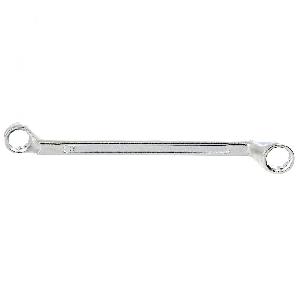 Накидной коленчатый ключ Sparta 147615, хромированный, используется для монтажа и демонтажа резьбовых соединений с шестигранной головкой диаметром 17 и 19 мм. Позволяет осуществлять монтажные работы в гараже, на небольшом производстве и в быту. Кольцевой профиль полностью захватывает шляпку крепежного элемента, поэтому ключом легко откручивать даже закисшие болты, гайки и т.д.ПреимуществаКлюч изготовлен из качественной углеродистой стали 45, поэтому обладает прочностью и прослужит долгое время.Твердость рабочих частей составляет 42 HRC, что соответствует требованиям ГОСТ (41-46 HRC).Хромовое покрытие гарантирует защиту от образования коррозии.12-гранный профиль каждого кольцевого зева обеспечивает надежный захват крепежа по всему периметру и сводит к минимуму риск повреждения его граней.Рабочие части, смещенные относительно рукоятки, позволяют работать ключом в труднодоступных местах.