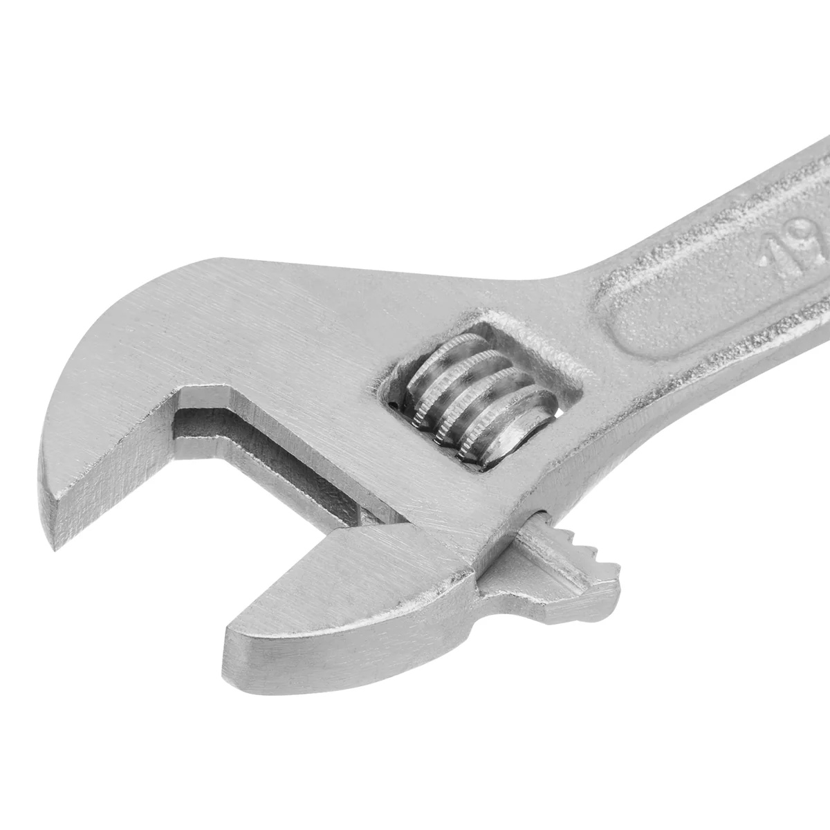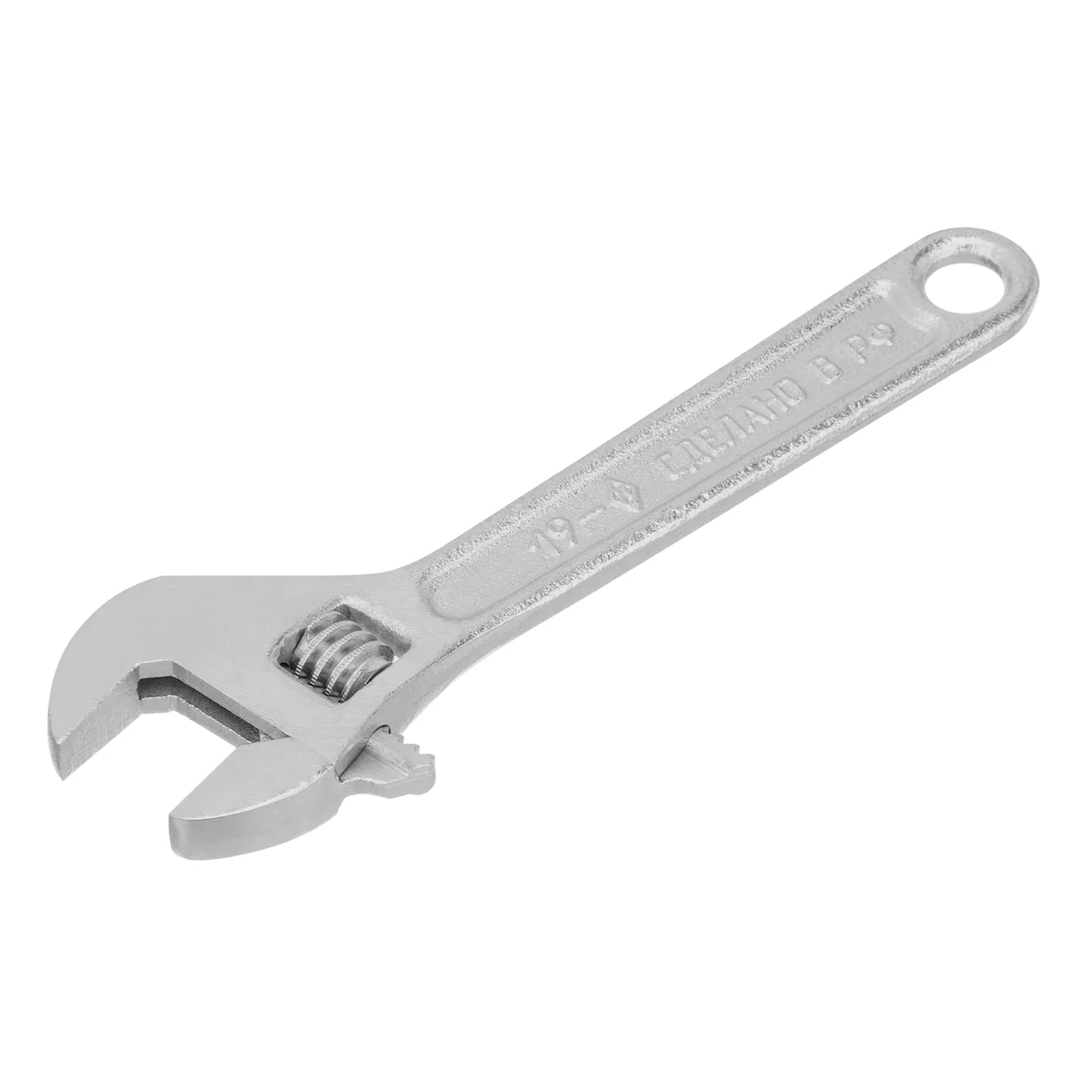 Разводной ключ НИЗ 15570 длиной 150 мм — универсальный инструмент для работы с крепежом стандартных и нестандартных размеров. Он станет незаменимым помощником при проведении слесарно-монтажных работ, мебельном ремонте, обслуживании бытовой техники и т.д. Максимальная ширина раскрытия зева составляет 20 мм, поэтому он оптимально подходит для мелких бытовых работ.ПреимуществаУглеродистая сталь 45, которая используется при изготовлении ключа, выступает гарантией его качества и долговечности.Защитное цинковое покрытие предупреждает появление коррозии.Мерная линейка на губке повышает точность и удобство работы.За счет небольшого веса ключа мастер не устанет даже при большом объеме работ.Специальное отверстие на рукоятке обеспечивает возможность хранения ключа в подвешенном виде.