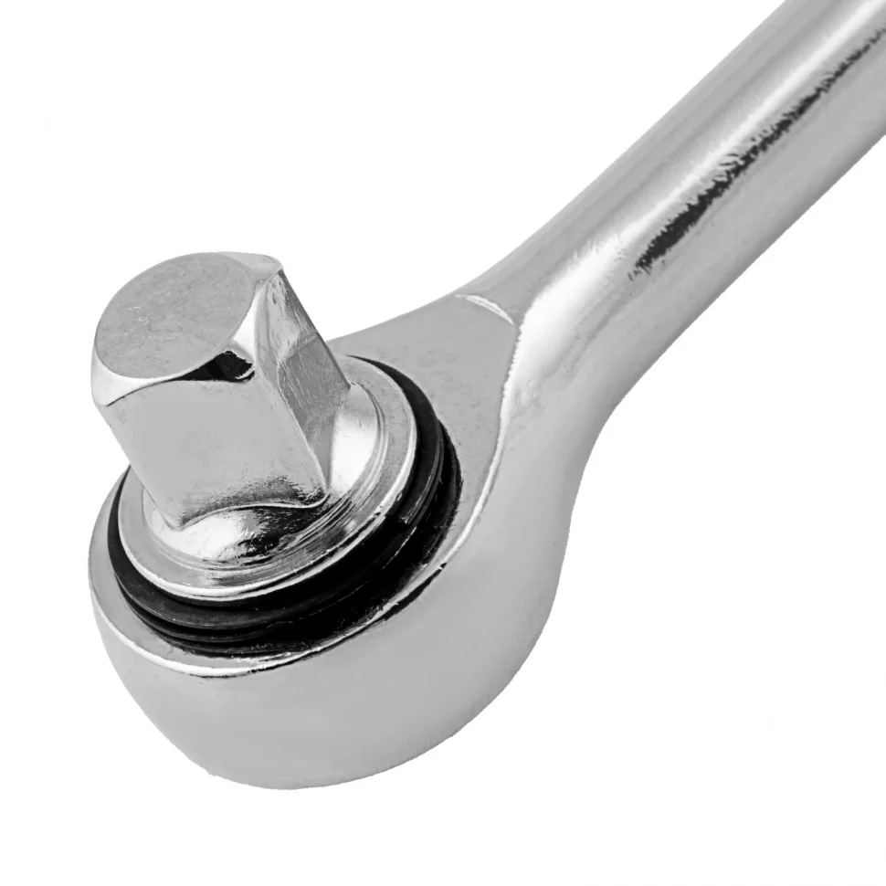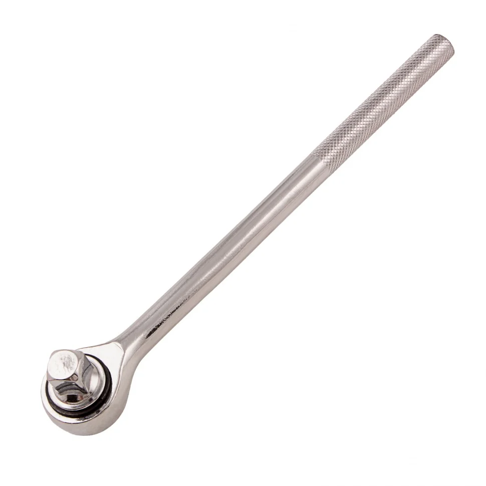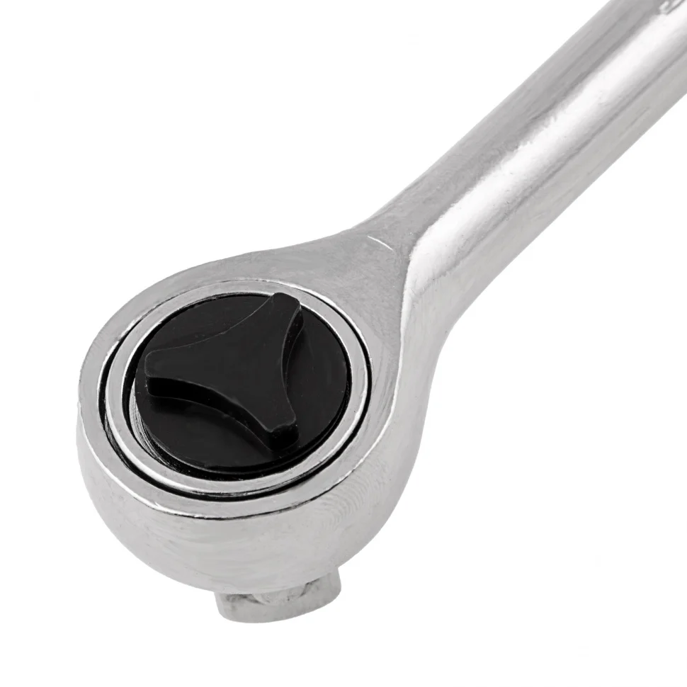 Ключ-трещотка Sparta 140605 из стали CrV, с присоединительным квадратом 1/2 дюйма и переключателем, применяется для монтажа и демонтажа болтов и гаек при помощи торцевых головок. Оснащен храповым механизмом, за счет чего может использоваться для работы в ограниченном пространстве. Пригодится в ремонтной мастерской, автосервисе, а также дома или на даче.ПреимуществаМатериал ключа — сталь хромованадиевой группы, обеспечивающая высокие прочностные характеристики и износоустойчивость.Поверхность ключа хромирована, что обеспечивает ему долговечность и защиту от коррозии.Переключатель позволяет быстро изменить направление вращения.Имеется функция быстрого сброса — для замены насадки потребуется всего несколько секунд.Шариковый фиксатор крепко удерживает торцевую головку и другие насадки — они не отскочат во время работы.Ключ не выскальзывает из руки благодаря рукоятке с рельефной поверхностью.