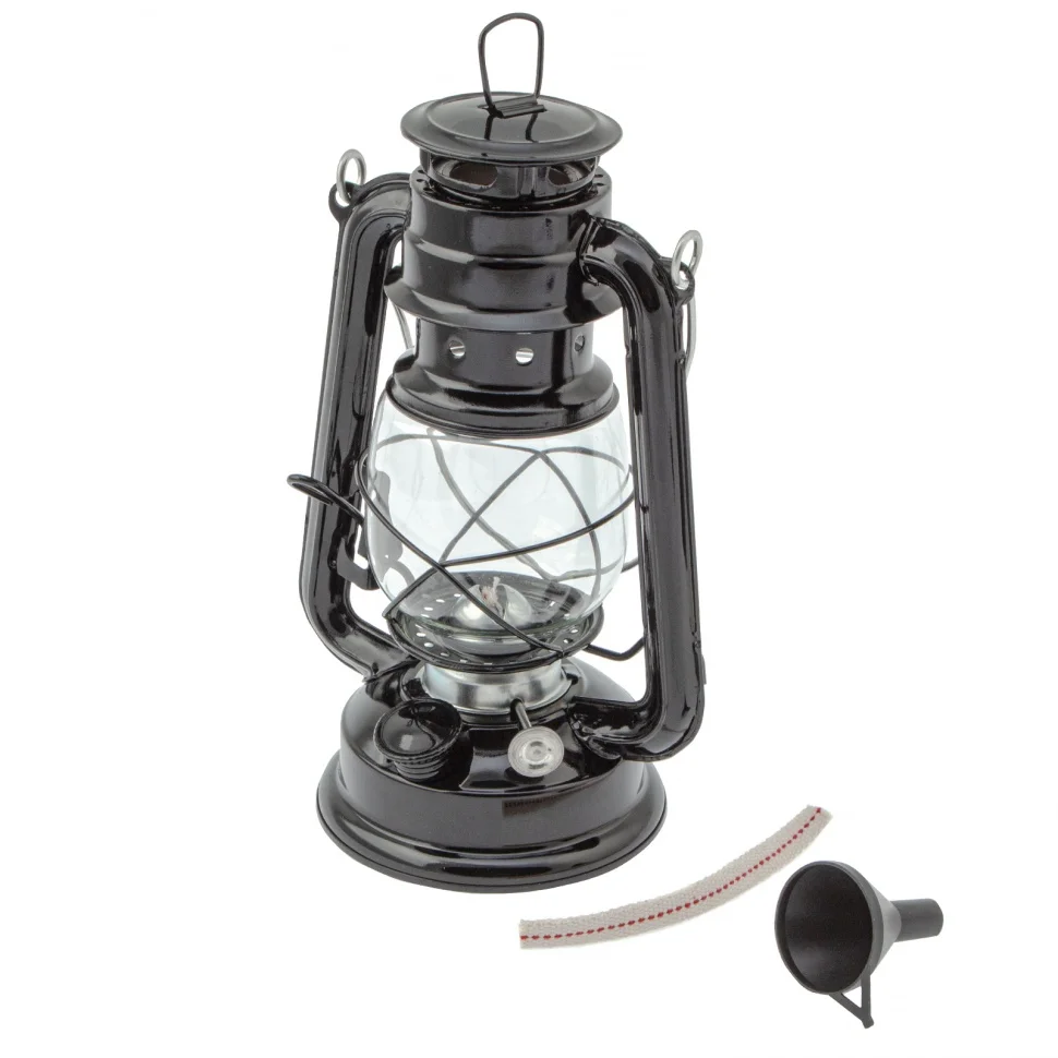 Керосиновая лампа Sparta «Летучая мышь» 932305 с емкостью для топлива объемом 0,2 л используется в качестве альтернативного источника света при отсутствии электричества. Ее можно расположить как в помещении, так и на улице. Транспортировку и размещение облегчают петля для переноски и скоба для подвешивания. Защитная решетка предохраняет колбу от повреждений. Лампа подойдет для освещения дачного дома или беседки.ПреимуществаКорпус изготовлен из жести с хромированным покрытием, защищающим от коррозии и внешних воздействий, поэтому изделие прослужит долго.Колба выполнена из жаро- и ударопрочного стекла, что обеспечивает безопасность использования.У лампы широкое основание, благодаря которому она не опрокинется, если ее поставить на горизонтальную поверхность.Поворотный механизм изменяет положение фитиля, за счет чего можно контролировать уровень яркости.В комплект входит запасной фитиль и воронка, поэтому приобретать их отдельно не нужно.