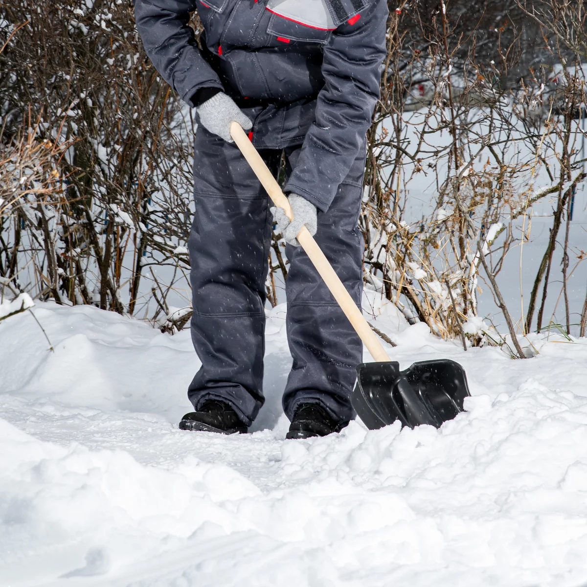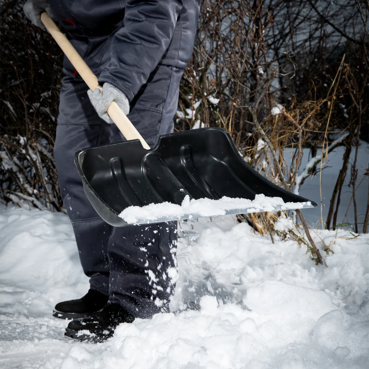 Лопата для уборки снега пластиковая, 380х385х1420 мм, деревянный черенок 615745