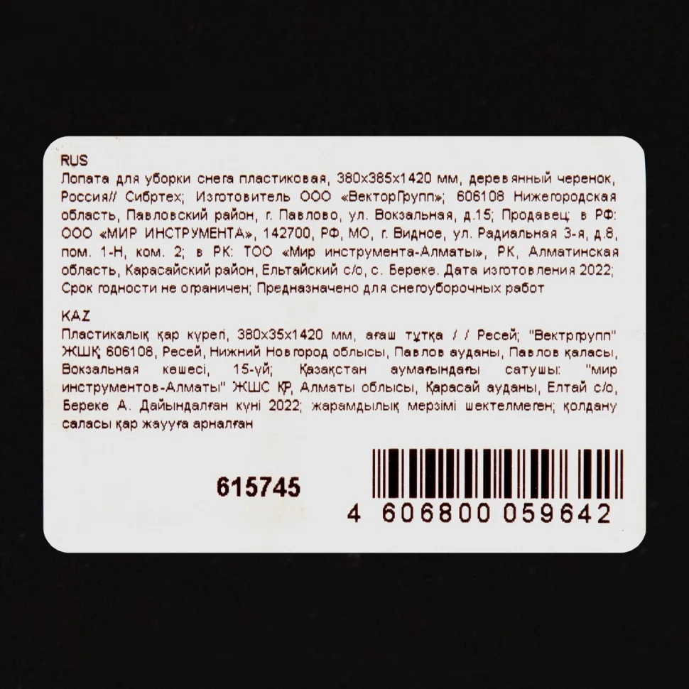 Пластиковая лопата 615745 размером 380 х 385 х 1420 мм, с деревянным черенком предназначена для уборки снега. С ее помощью можно очистить дорожки в загородном доме, выезд из гаража и т.д. За счет длины 1420 мм с ней комфортно работать, так как снижается нагрузка на спину.ПреимуществаКовш выполнен из полипропилена, который выдерживает морозы до -20 °С.Кромка ковша оснащена защитной накладкой из алюминиевого сплава, благодаря чему он защищен от повреждений и износа, а также справляется с очисткой не слежавшегося снега.Дополнительные ребра жесткости повышают устойчивость ковша к нагрузкам.Рабочая часть оснащена высокими бортиками, поэтому снег не вываливается во время работы.Деревянный черенок удобно лежит в руке и не проскальзывает.
