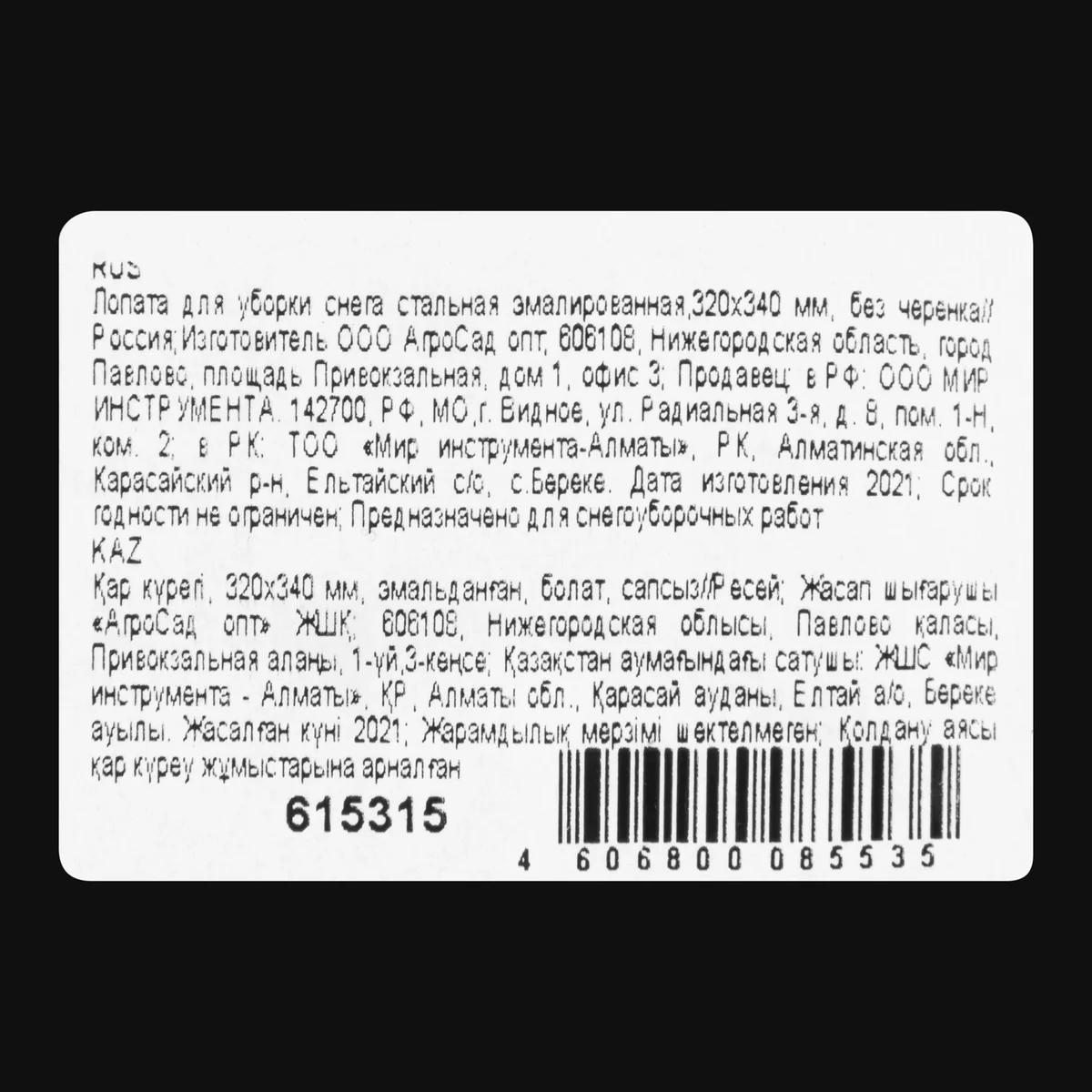 Лопата для уборки снега стальная эмалированная, 320 х 340 мм, без черенка, 615315
