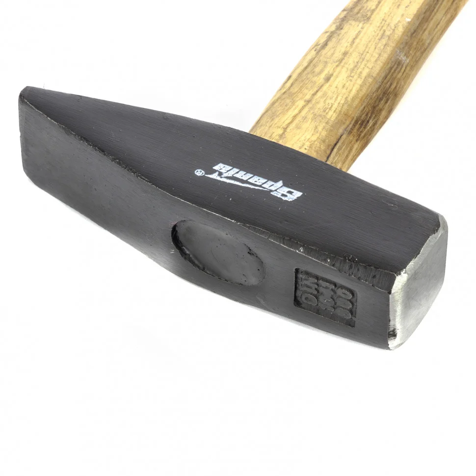 Слесарный молоток Sparta 102155 длиной 350 мм, с квадратным бойком весом 800 г и деревянной рукояткой предназначен для нанесения ударов при работе с металлом и забивании гвоздей. Позволяет выполнять большой объем работ с крупным крепежом. Заостренный с одного конца боек облегчает работу в труднодоступных местах. Молоток пригодится на стройплощадке и во время ремонта, а также будет полезен в домашнем хозяйстве.ПреимуществаГоловка изготовлена из среднеуглеродистой стали 45 методом ковки и отфрезерована, что обеспечивает прочность и устойчивость молотка к деформациям.Рабочие части бойка закалены до твердости 40-45 HRC, поэтому он не разрушится при ударах.Головка надежно зафиксирована на рукоятке путем расклинивания и дополнительно проклеена эпоксидным клеем, поэтому держится крепко и не соскользнет во время работы.Головка покрыта черным лаком для защиты от образования коррозии.Гладкая деревянная рукоятка не скользит в руке, а бесцветное лаковое покрытие защищает ее от рассыхания.