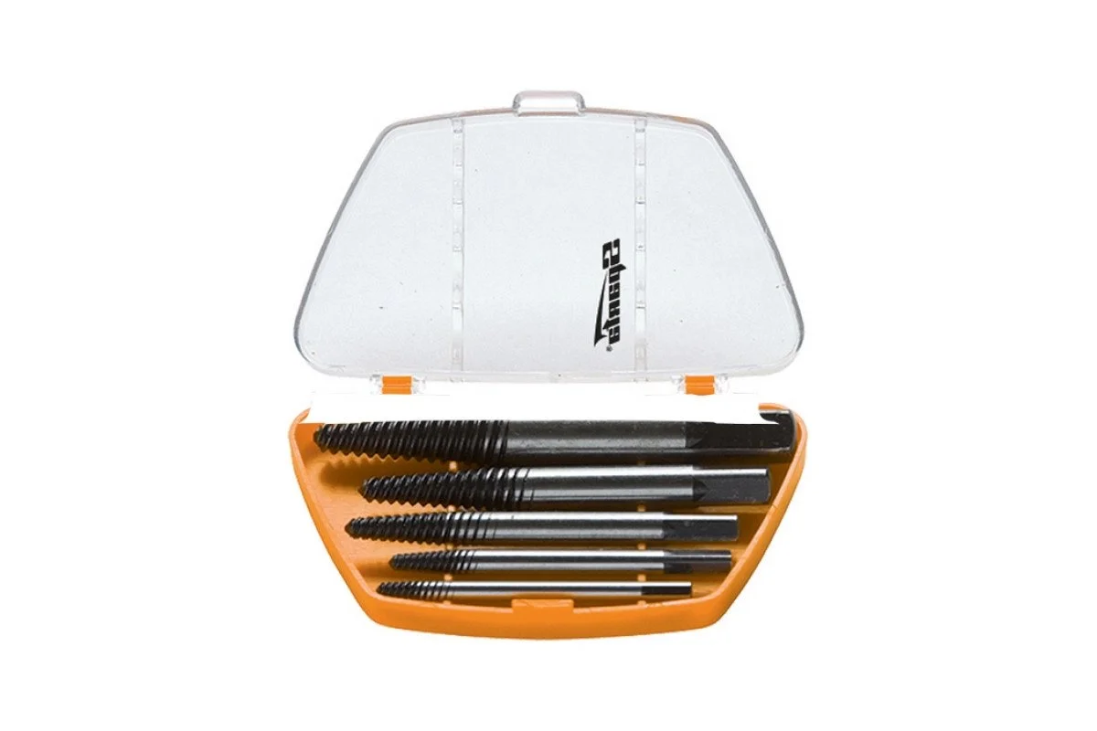 - 5 экстракторов для шпилек и болтов: № 1 (3–6 мм), № 2 (6–8 мм), № 3 (8–11 мм), № 4 (11–14 мм), № 5 (14–18 мм);