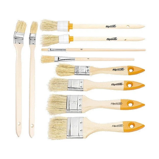 Набор плоских, круглых и радиаторных кистей Sparta 841155, 10 шт., пригодится при проведении покрасочных работ, в том числе с масляными красками. Кисти с натуральной щетиной оптимальны для нанесения составов на основе растворителей. С их помощью можно получить равномерное финишное покрытие.ПреимуществаНадежность фиксации щетины обеспечивает металлический бандаж, который обработан антикоррозийным покрытием для защиты от ржавчины.Щетина расщеплена на концах, за счет чего улучшаются краскообменные свойства кистей.В состав набора входят плоские кисти размером 3/4 дюйма и 2 дюйма, круглые №2, №4, радиаторные 1 и 1,5 дюйма и две №2 и №6 для масляных красок для удобства работы на разных участках, в том числе труднодоступных и узких.На ручках имеются специальные отверстия, благодаря которым кисти можно хранить в подвешенном состоянии.