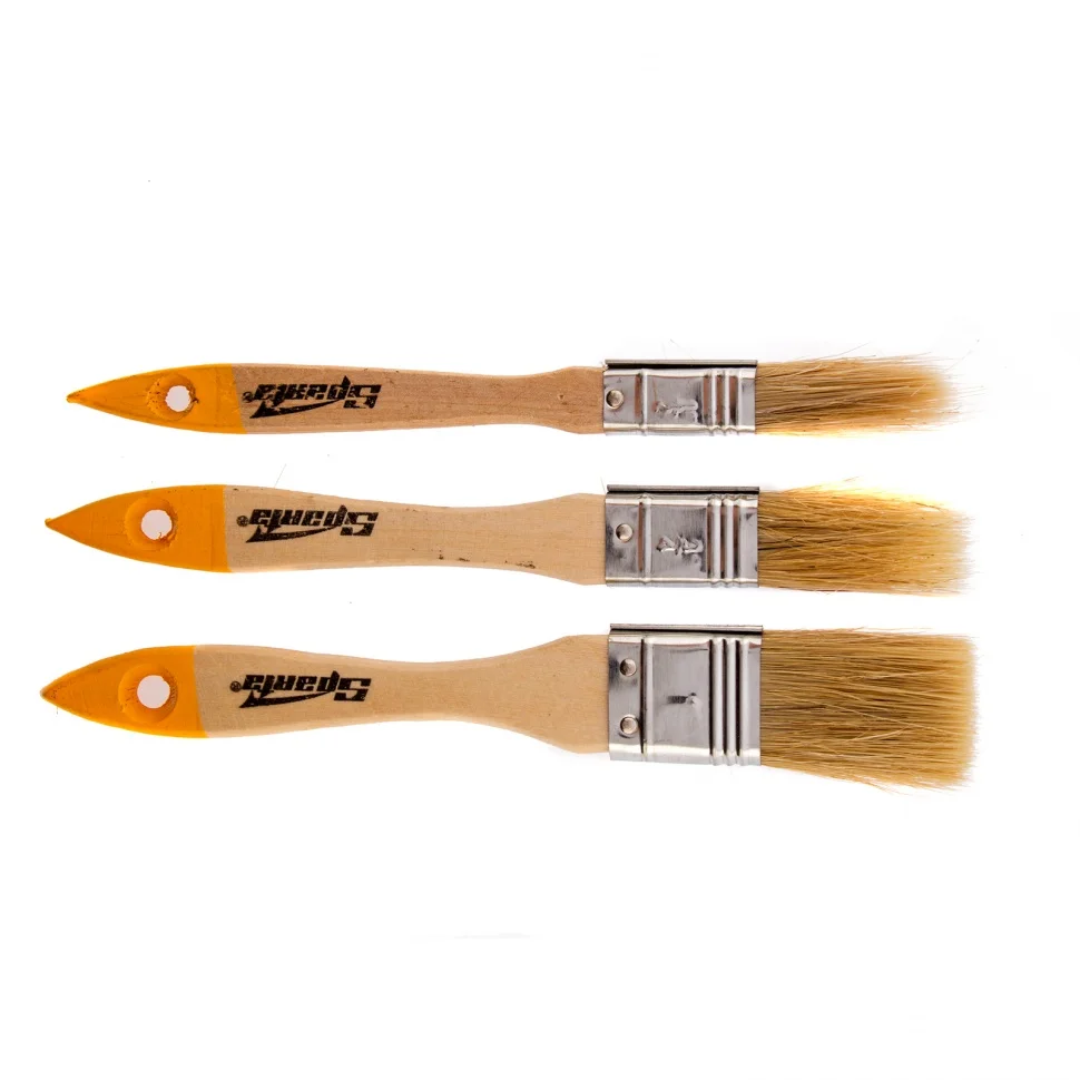 Набор плоских кистей Sparta 841115, 3 шт., пригодится при проведении покрасочных работ. Кисти с натуральной щетиной оптимальны для нанесения составов на основе растворителей, а также масляных красок. С их помощью можно получить равномерное финишное покрытие.ПреимуществаНадежность фиксации щетины обеспечивает металлический бандаж, который обработан антикоррозийным покрытием для защиты от ржавчины.Щетина расщеплена на концах, за счет чего улучшаются краскообменные свойства кистей.В состав набора входят кисти размером 1/2 дюйма, 3/4 дюйма и 1 дюйм для удобства работы на разных участках, в том числе труднодоступных.На ручках имеются специальные отверстия, благодаря которым кисти можно хранить в подвешенном состоянии.