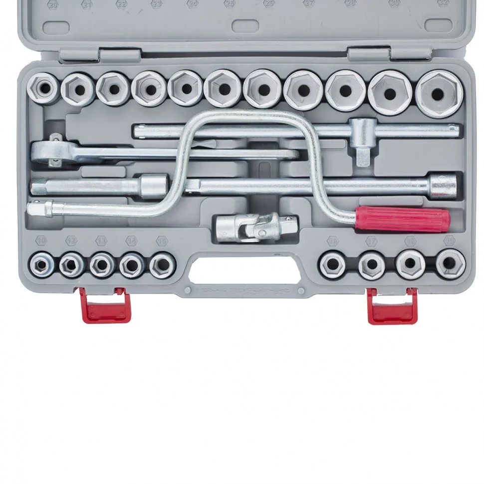 Набор шоферского инструмента № 4 НИЗ 13454 в пластиковом боксе пригодится автомобилистам для технического обслуживания и ремонта машин. Он содержит 20 торцевых головок типоразмеров 10, 12-28, 30 и 32 мм для монтажа крепежных элементов, трещотку для их зажима, удлинители и коловорот для работы в труднодоступных местах, шарнир и ключ с присоединительным квадратом.ПреимуществаПрочность и долговечность — все инструменты изготовлены из конструкционной легированной стали 40Х и оцинкованы для предотвращения коррозии.Быстрое переключение между задачами — трещоточный ключ с функцией реверса позволяет как закручивать, так и откручивать болты и гайки.Коловорот в комплекте — можно открутить даже прикипевшие крепежи.Возможность работы в ограниченном пространстве — удлинители 125 и 250 мм, а также карданный шарнир позволяют откручивать крепеж под любым углом.Надежная фиксация насадок — ключ с присоединительным квадратом оснащен металлическим шариком.Удобное хранение и транспортировка — набор поставляется в пластиковом боксе с подписанными номерами торцевых головок.