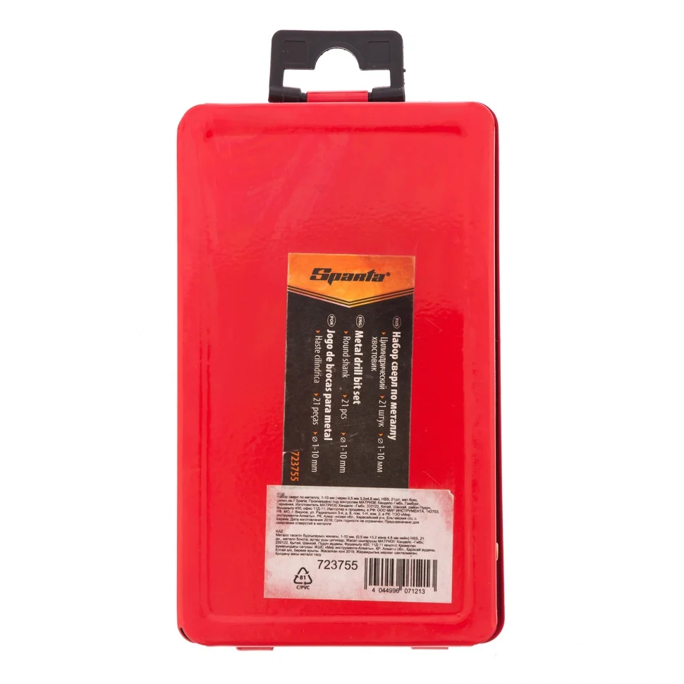 Набор Sparta 723755 включает 21 сверло по металлу диаметром от 1 до 10 мм (через 0,5, 3,2, 4,8 мм), из стали HSS, с цилиндрическим хвостовиком, в металлическом боксе. Они предназначены для сверления отверстий в металлических заготовках. В комплекте сверла самых ходовых размеров, которые будут полезны дома, на даче или в гараже.ПреимуществаПрочность — сверла изготовлены из быстрорежущей стали, устойчивой к деформациям в результате динамических нагрузок и нагрева.Универсальность — сверла с цилиндрическими хвостовиками можно устанавливать в патроны всех типов.Удобное хранение и транспортировка — набор поставляется в металлическом боксе.