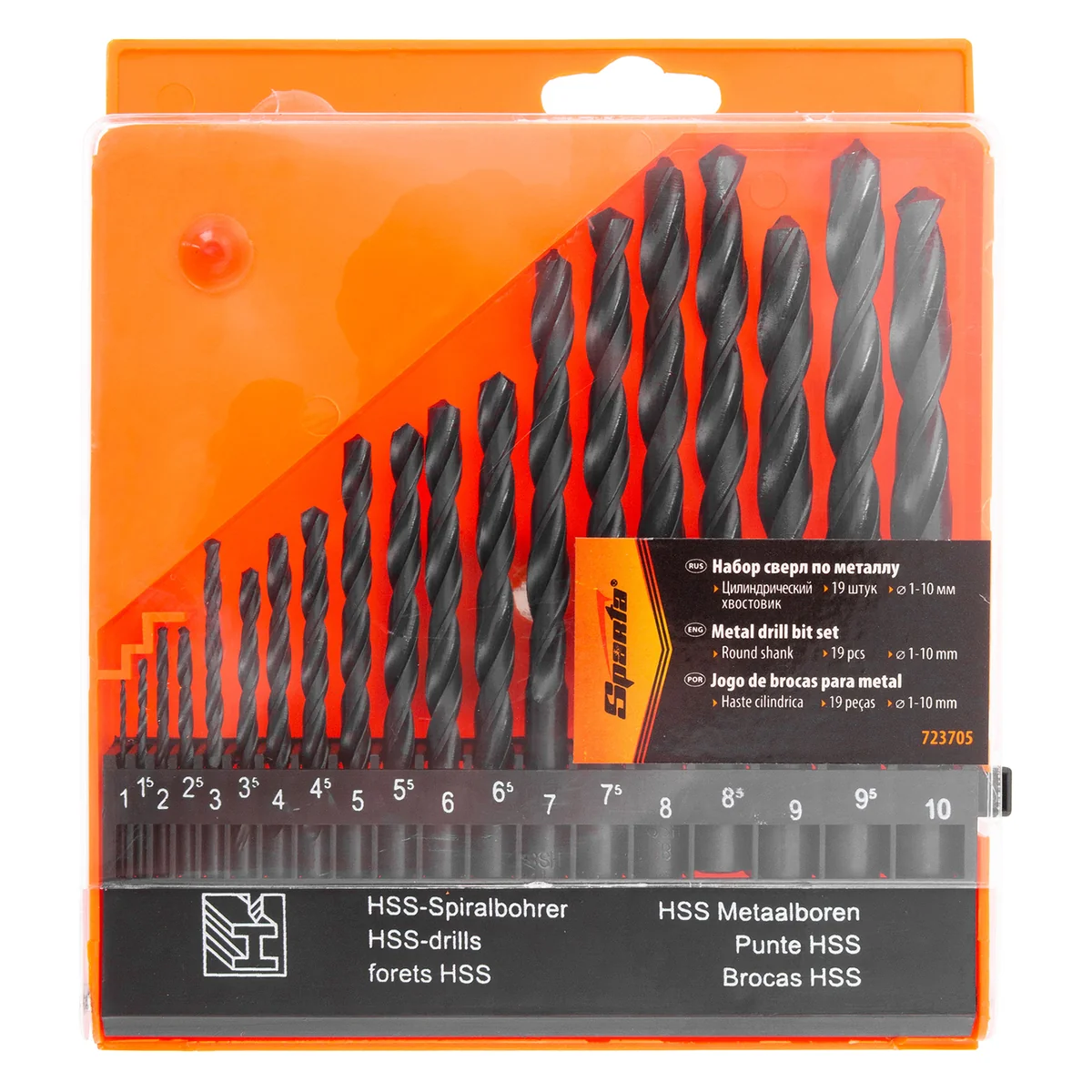 Набор Sparta 723705 включает 19 сверл по металлу диаметром от 1 до 10 мм (через 0,5 мм), из стали HSS, с цилиндрическим хвостовиком, упакованных в пластиковый бокс. Они предназначены для сверления отверстий в металлических заготовках. В комплекте сверла самых ходовых размеров, которые будут полезны дома, на даче или в гараже.ПреимуществаПрочность — сверла изготовлены из быстрорежущей стали, устойчивой к деформациям в результате динамических нагрузок и нагрева.Универсальность — сверла с цилиндрическими хвостовиками можно устанавливать в патроны всех типов.Удобное хранение и транспортировка — набор поставляется в пластиковом боксе.