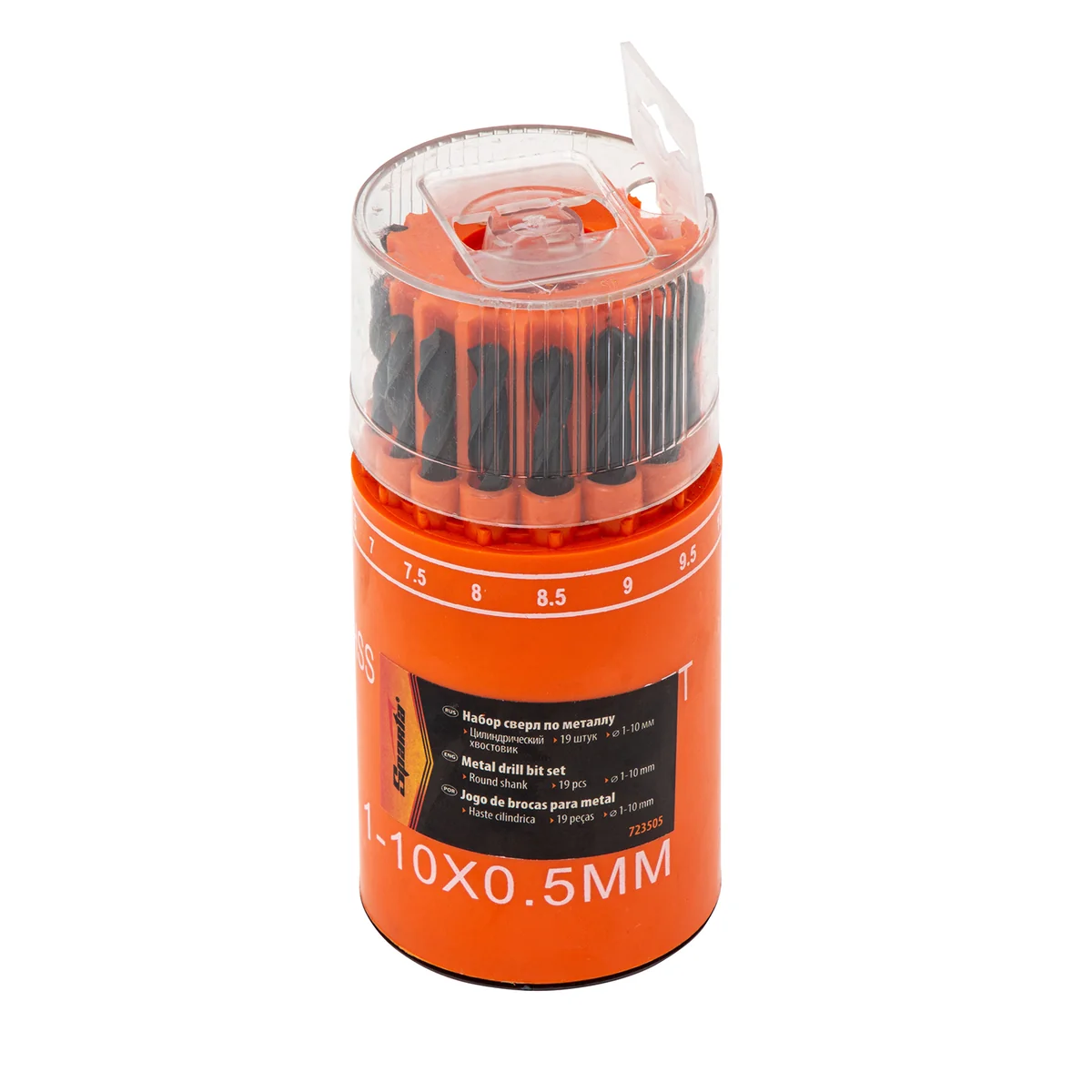 Набор Sparta 723505 включает 19 сверл по металлу диаметром от 1 до 10 мм (через 0,5 мм), из стали HSS, с цилиндрическим хвостовиком, в стакане. Они предназначены для сверления отверстий в металлических заготовках. В комплекте сверла самых ходовых размеров, которые будут полезны дома, на даче или в гараже.