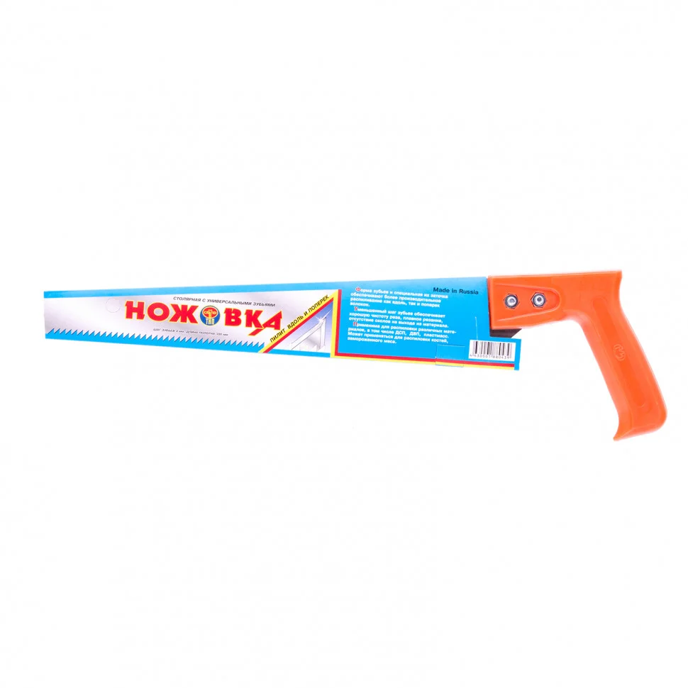 Ножовка 23122 с полотном длиной 300 мм предназначена для фигурного выпиливания по дереву. Зубья с двухгранной заточкой и шагом 6 TPI обеспечивают высокую производительность инструмента. Узкое полотно позволяет выполнять криволинейные пропилы по заданному контуру. Ножовка подходит как для продольного, так и для поперечного пиления. Режущую часть можно перетачивать. Инструмент будет полезен в столярной мастерской, пригодится и в домашнем хозяйстве.ПреимуществаПолотно из холоднокатаной рессорно-пружинной стали 65Г обладает прочностью и устойчивостью к изгибанию.Каленые зубья имеют высокий показатель износостойкости.Бесцветное лаковое покрытие, устойчивое к истиранию, защищает полотно от коррозии.Пластиковая рукоятка не ржавеет, не разбухает и не рассыхается, что увеличивает срок службы инструмента.