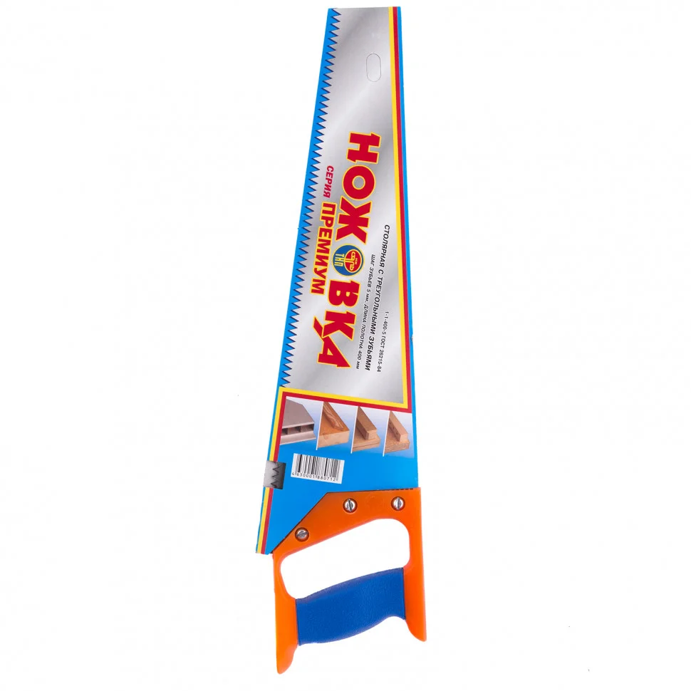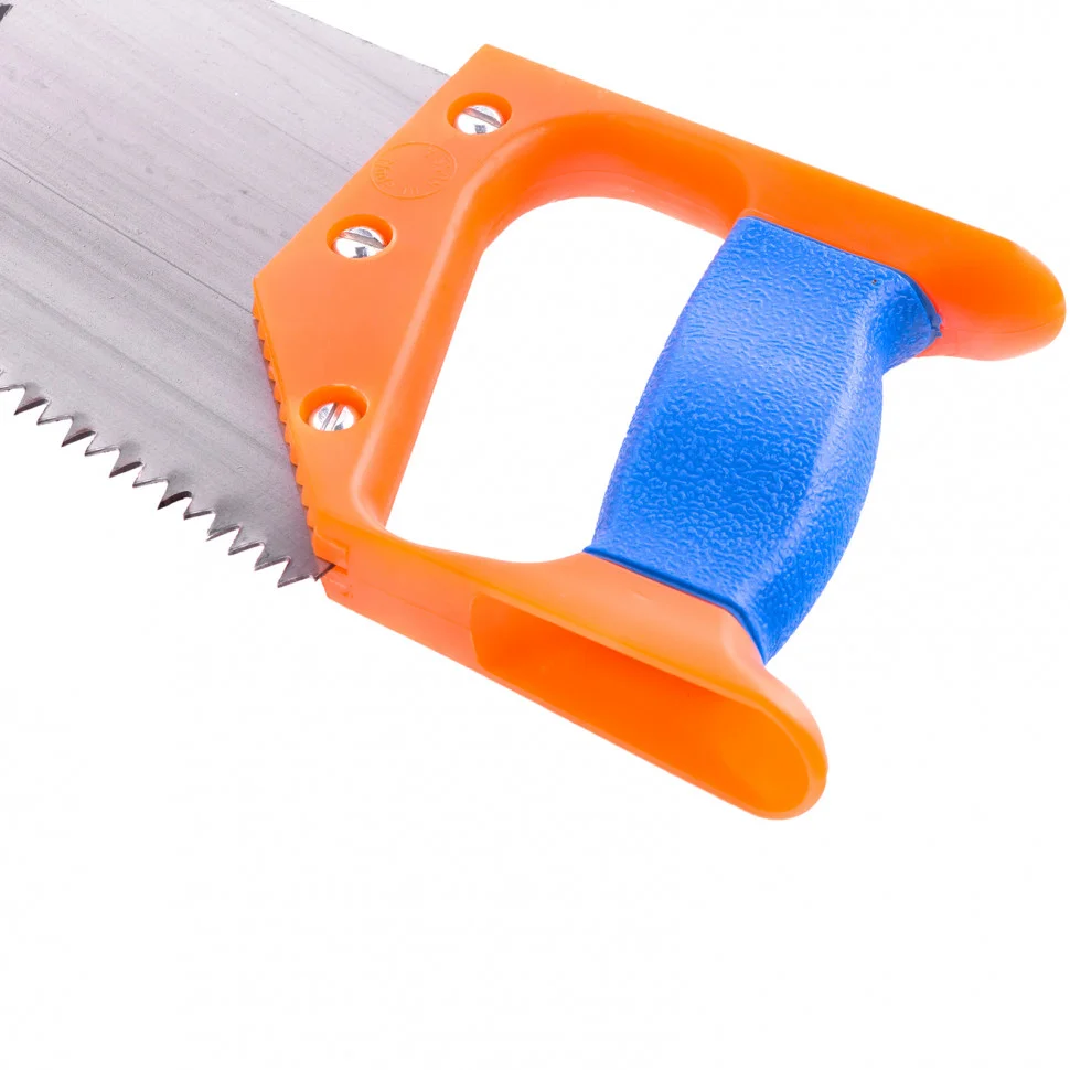 Ножовка по дереву 23162 с длиной полотна 400 мм и пластиковой рукояткой — режущий инструмент, шаг зубьев которого составляет 5 мм. Применяется для продольно-поперечного пиления древесины. Пилит в направлении от себя и на себя. Крупные зубья обеспечивают быстрый рез. Если режущая кромка затупится, ее можно заточить. Пила будет полезна столярам и плотникам, пригодится также дома или на даче.ПреимуществаПолотно из холоднокатаной пружинной стали 65Г обладает прочностью и деформационной стойкостью.Закаленные зубья обеспечивают инструменту высокий рабочий ресурс.Лаковое покрытие защищает пилу от коррозии.Зафиксированное 3 винтами полотно не выпадает из рукоятки.Эргономичная пластиковая рукоятка удобно лежит в руке.